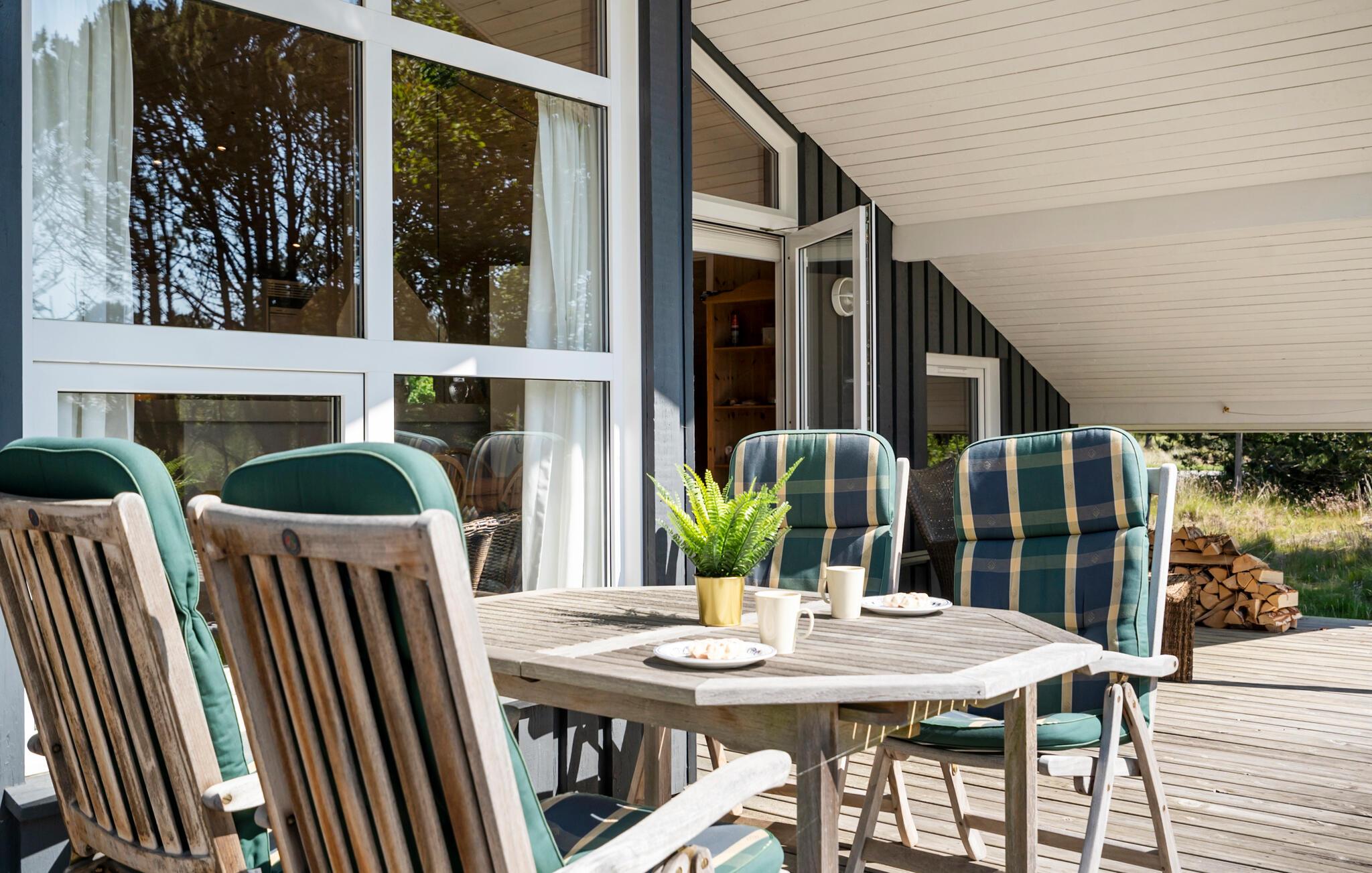 Tilbring solrige timer på de store terrasser, der omgiver huset. Sæt jer i en af ??de komfortable havestole, spis morgenmad udendørs eller sæt jer og nyd udsigten over den smukke naturgrund.