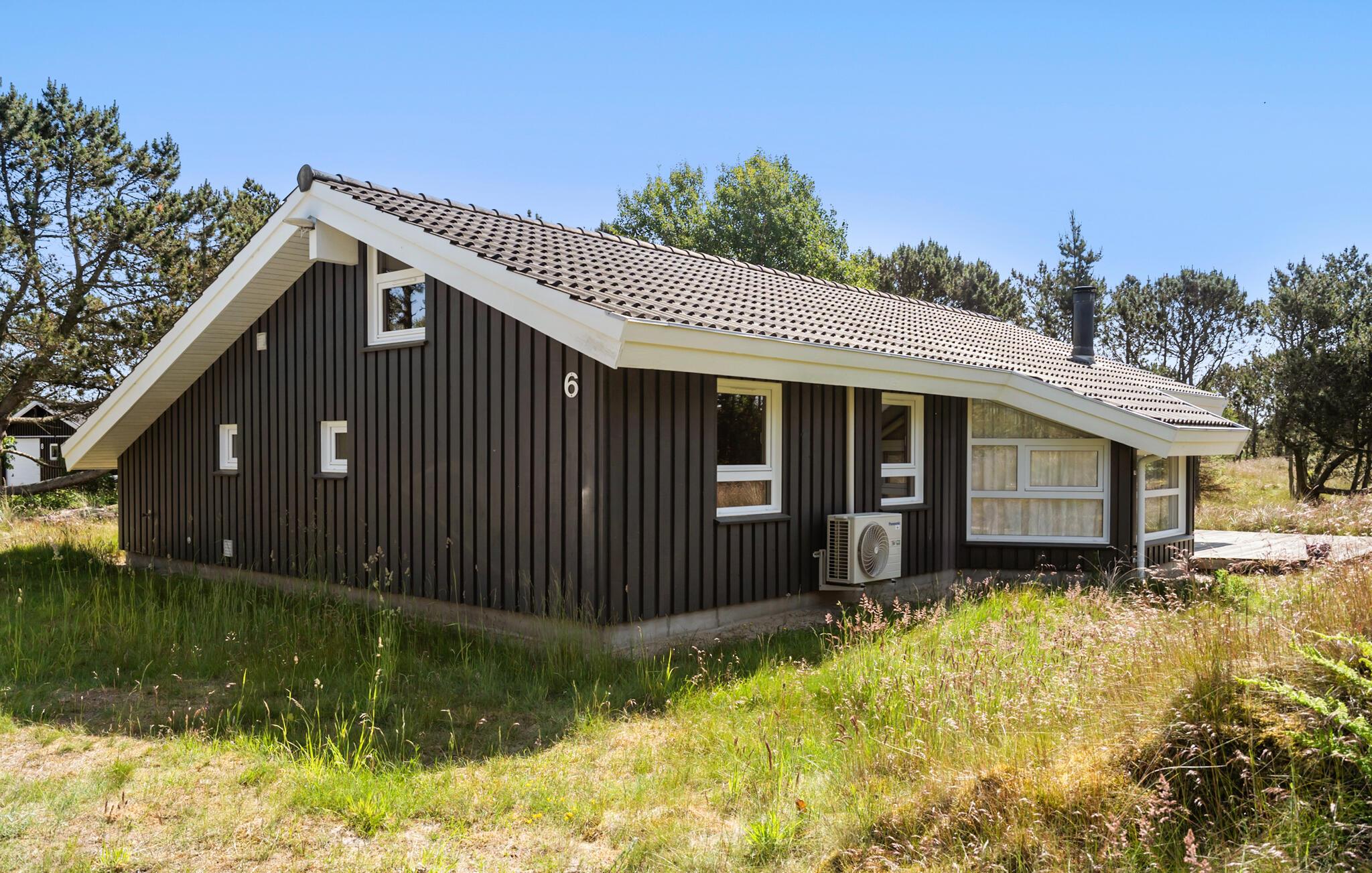 Stilfuldt træhus med smuk udsigt og kun 350 m til børnevenlig strand i Strandby, Bratten.