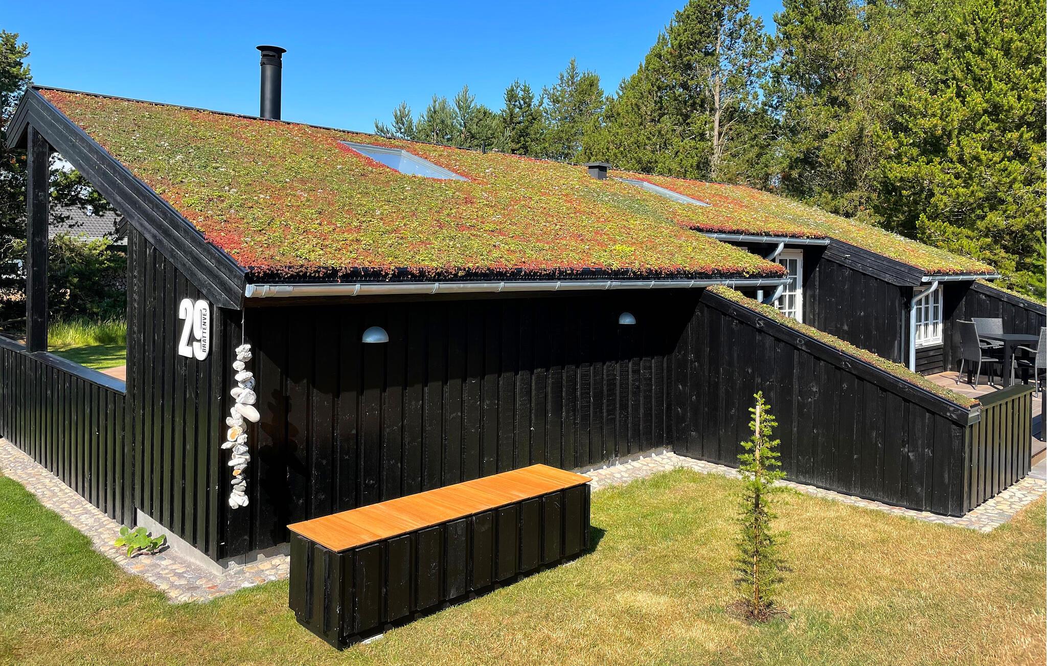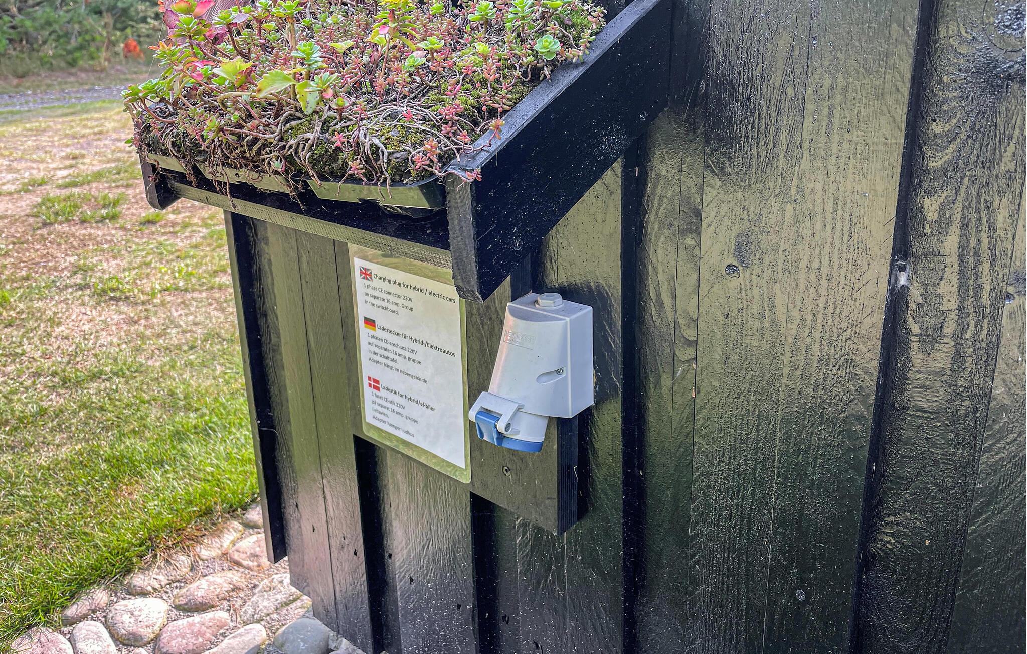 Huset er omkranset af fin naturgrund. Et ladestik til elbiler er tilgængeligt.