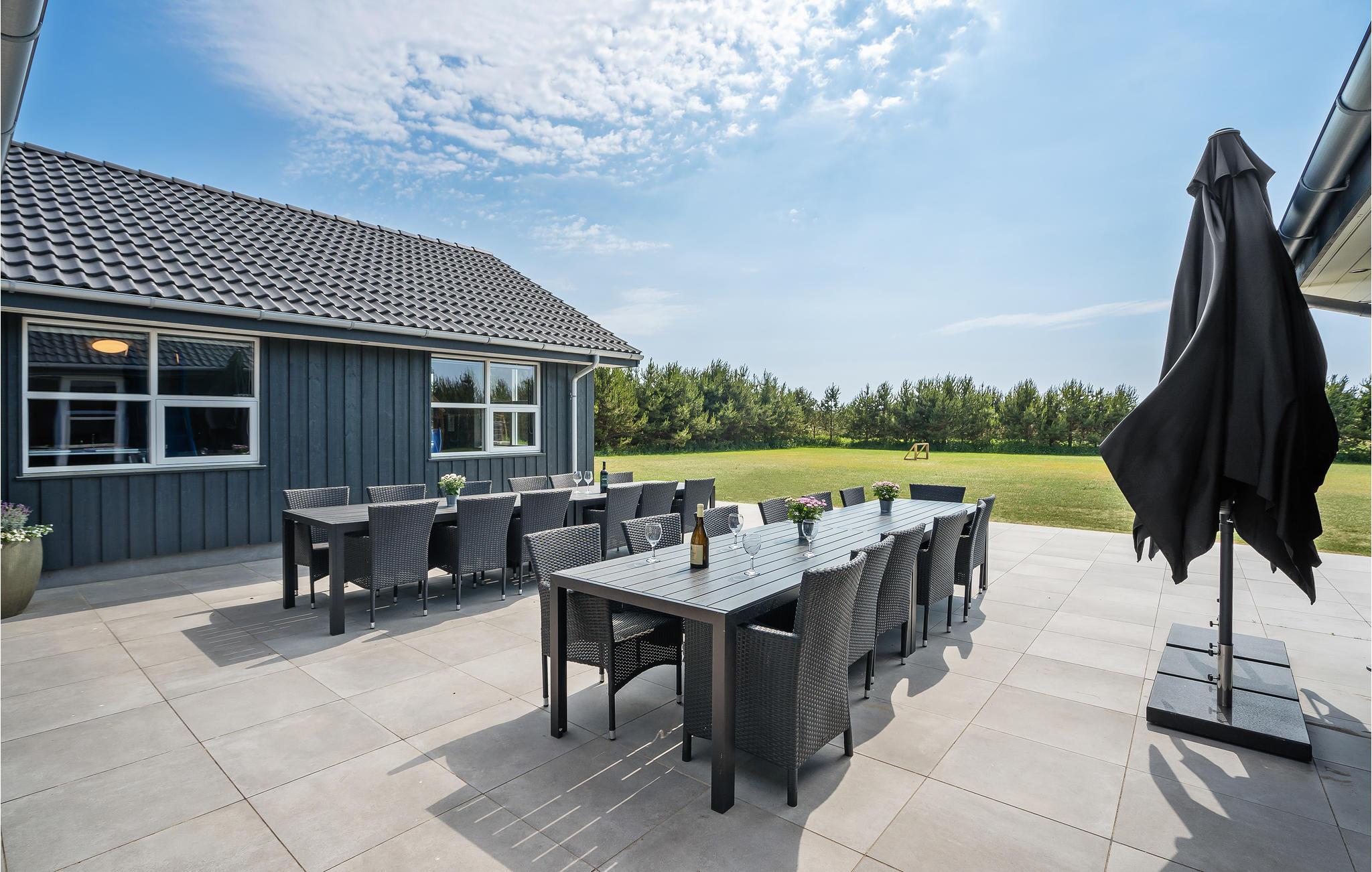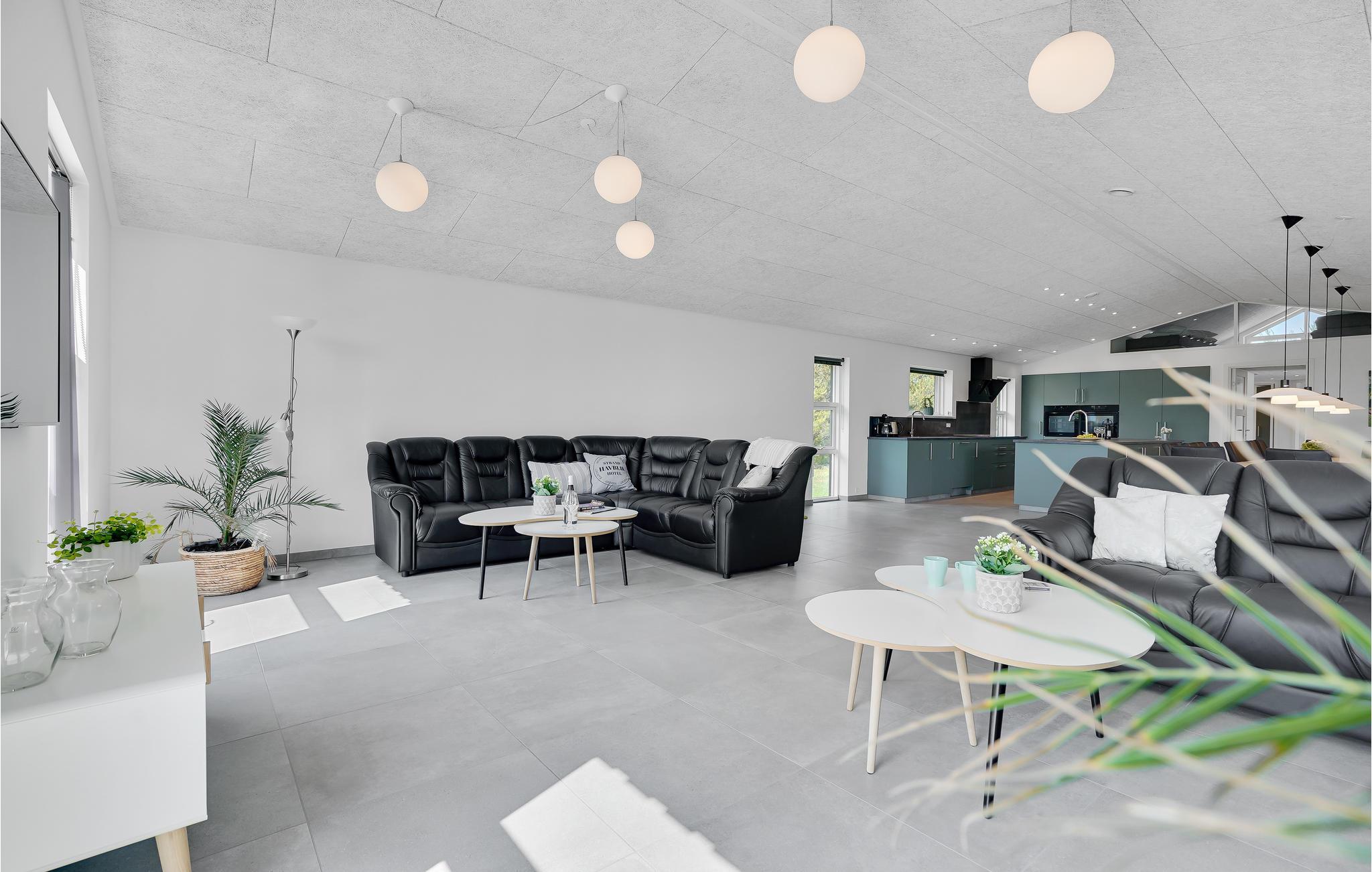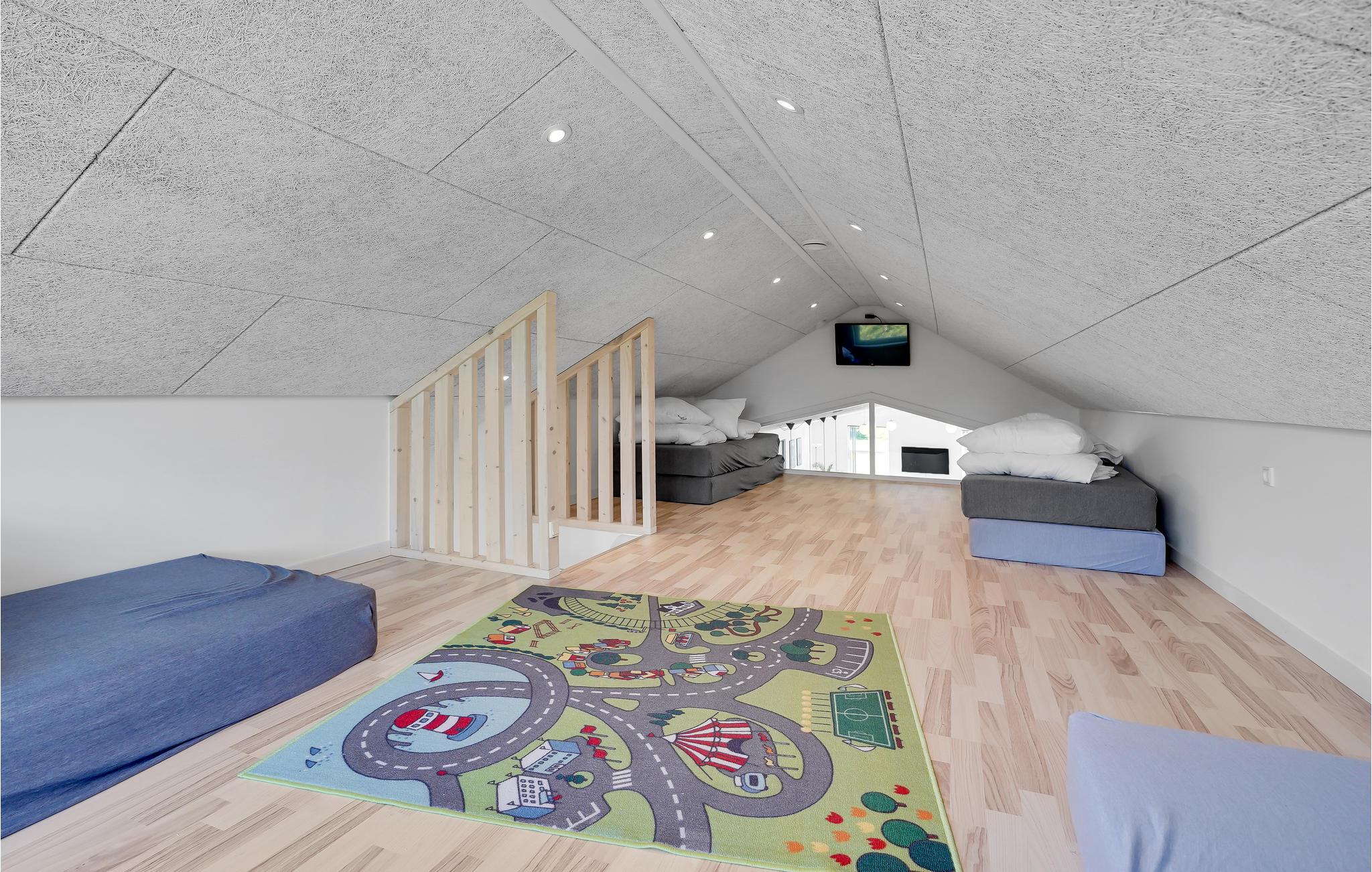 Den store poolafdeling indbyder til mange timers sjov og leg i den skønne swimmingpool og afslapning i spabadet. Den skønne pool er altid opvarmet til min. 30 grader ved lejers ankomst. Endvidere er der et stort aktivitetsrum med både bordfodbold, bordtennis og poolbord, så der er noget for alle at tage sig til. Huset er også udstyret med otte dejlige soveværelser. Endvidere findes der seks sovepladser på en stor hems, hvortil der er trappeadgang og en god loftshøjde - et godt rum for de yngre gæster at hygge sig i. Hertil kommer et stort køkken/alrum samt fire flotte badeværelser. Udendørs er der fine terrasser, hvor I kan nyde et glas vin, mens børn og barnlige sjæle boltrer sig med udendørsaktiviteterne, som bl.a. omhandler gynge og sandkasse. Desuden har huset et genvexanlæg installeret, som sørger for et optimalt indeklima, der er også jordvarme, som gør huset energibesparende at bo i, og udenfor er der opsat to ladestationer til el-biler. Hvis I har brug for at huse flere personer, end jeres feriehus har plads til, så er nærmeste nabo A20150 til 18 personer, helt oplagt at leje samtidig med.