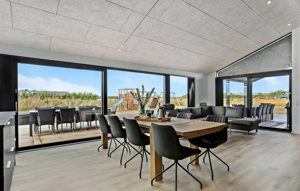 Glæd jer til et herligt feriested, hvor I kan nyde nogle dage i roligt tempo. Her kan I først og fremmest se frem til et dejligt opholdsrum med masser af lys fra de store vinduespartier, så I kommer sikkert til at tilbringe en god del af tiden her med at læse bøger, spille spil og give jer god tid til madlavningen.