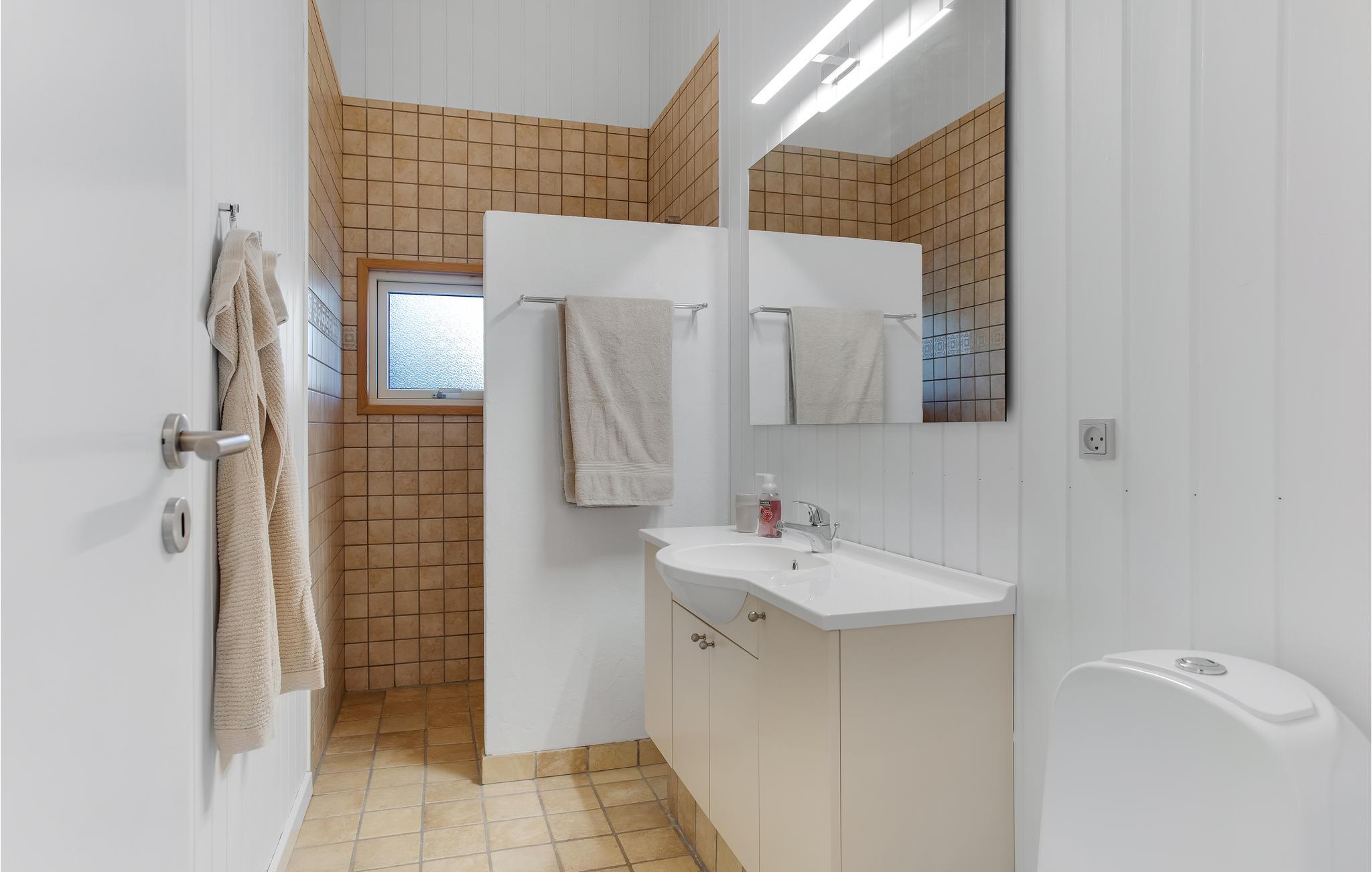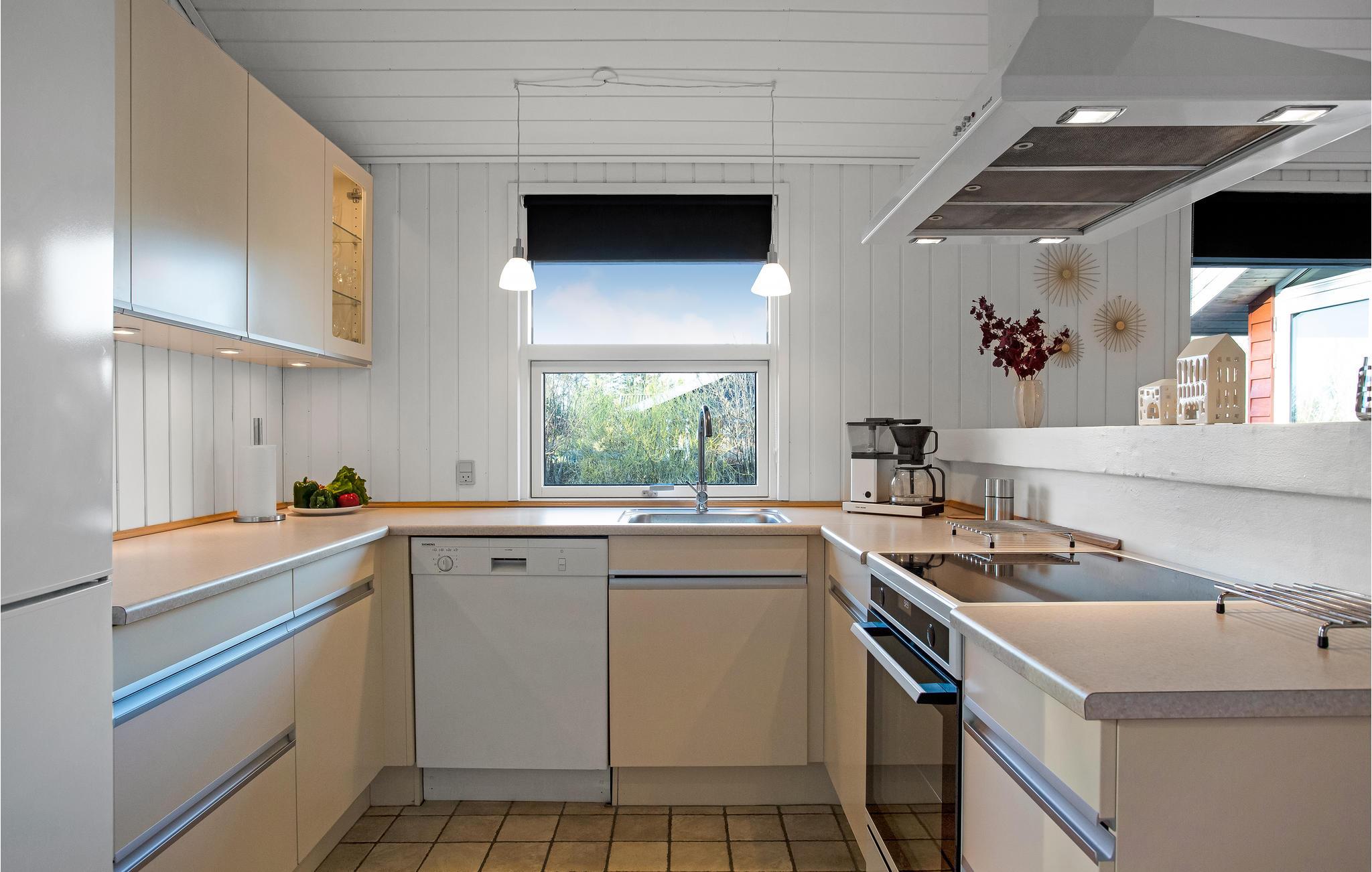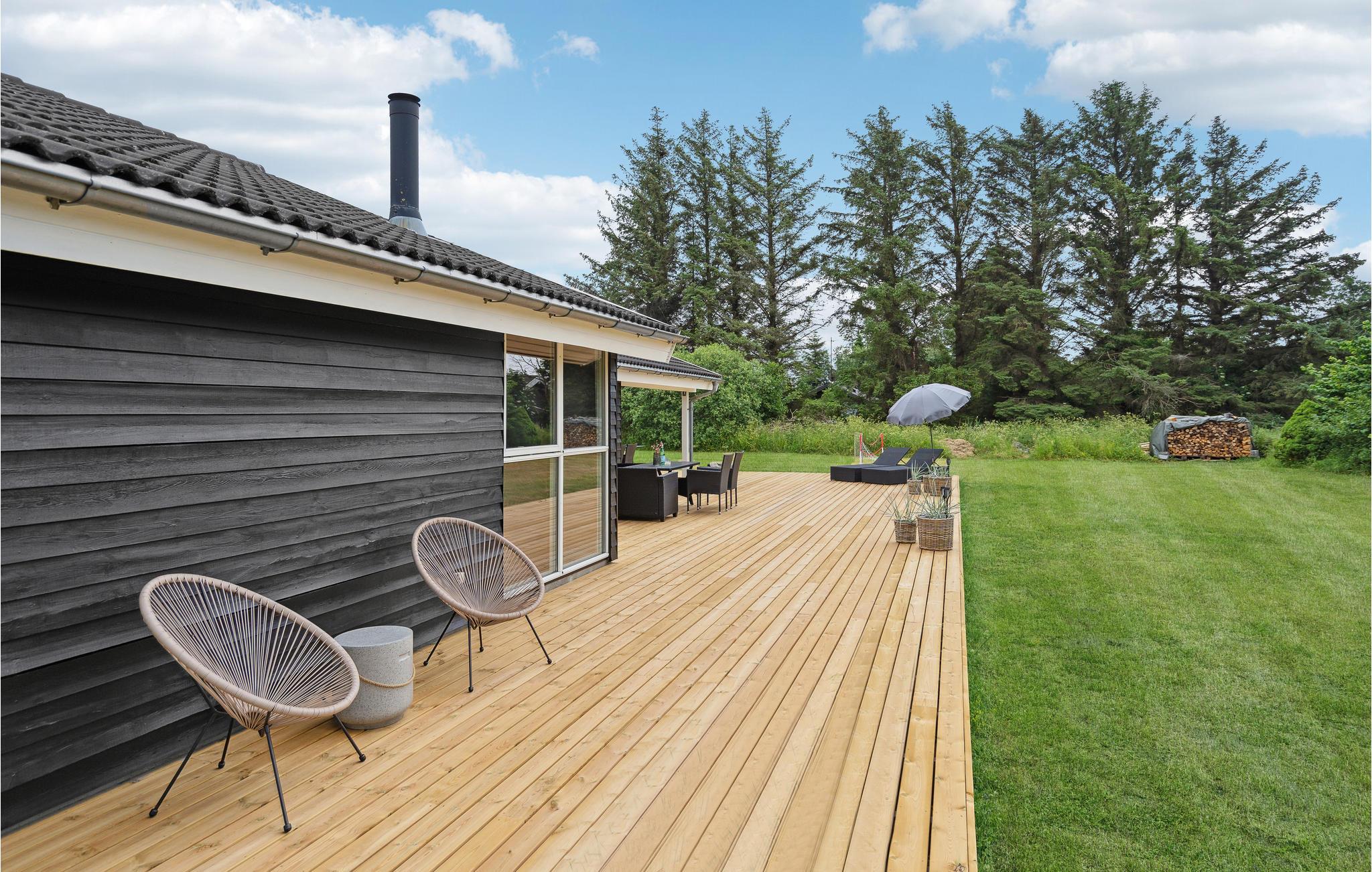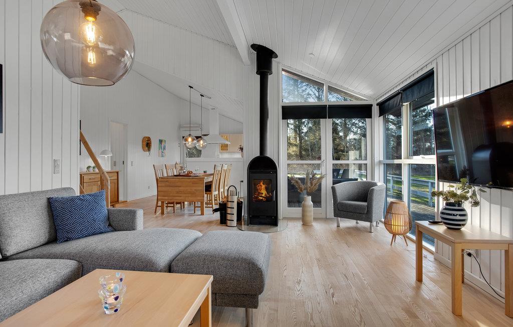 Glæd jer til en familieferie i dette skønne hus, som lægger op til en uforglemmelig ferie. Træd ind i huset og føl jer straks hjemme. Vinduerne går fra gulv til loft og sørger et naturligt lys, som skaber en skøn følelse af ro. Om aftenen kan I hygge jer med madlavning, brætspil eller en god film, mens ilden knitrer i brændeovnen. Glæd jer også til en lille wellness-stund i badeværelset, hvor der både er boblebad og sauna. Hele familien kan se frem til gode timer i det fri, for udendørs venter der er en dejlig have. Den store terrasse bliver jeres faste opholdssted på solskinsdagene. Dæk op til dagens måltider, mens børnene har det sjovt med at løbe og lege på grunden.
