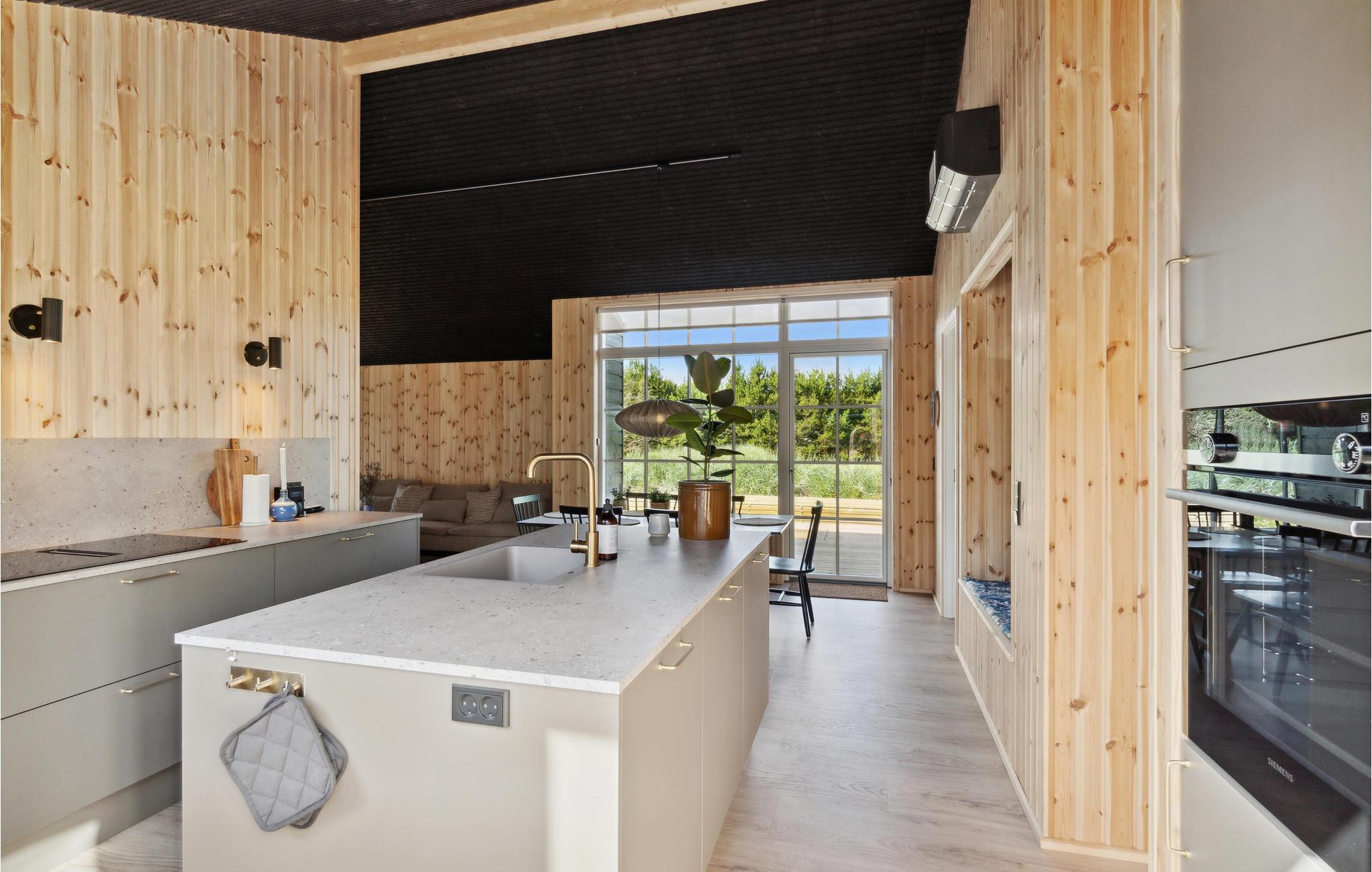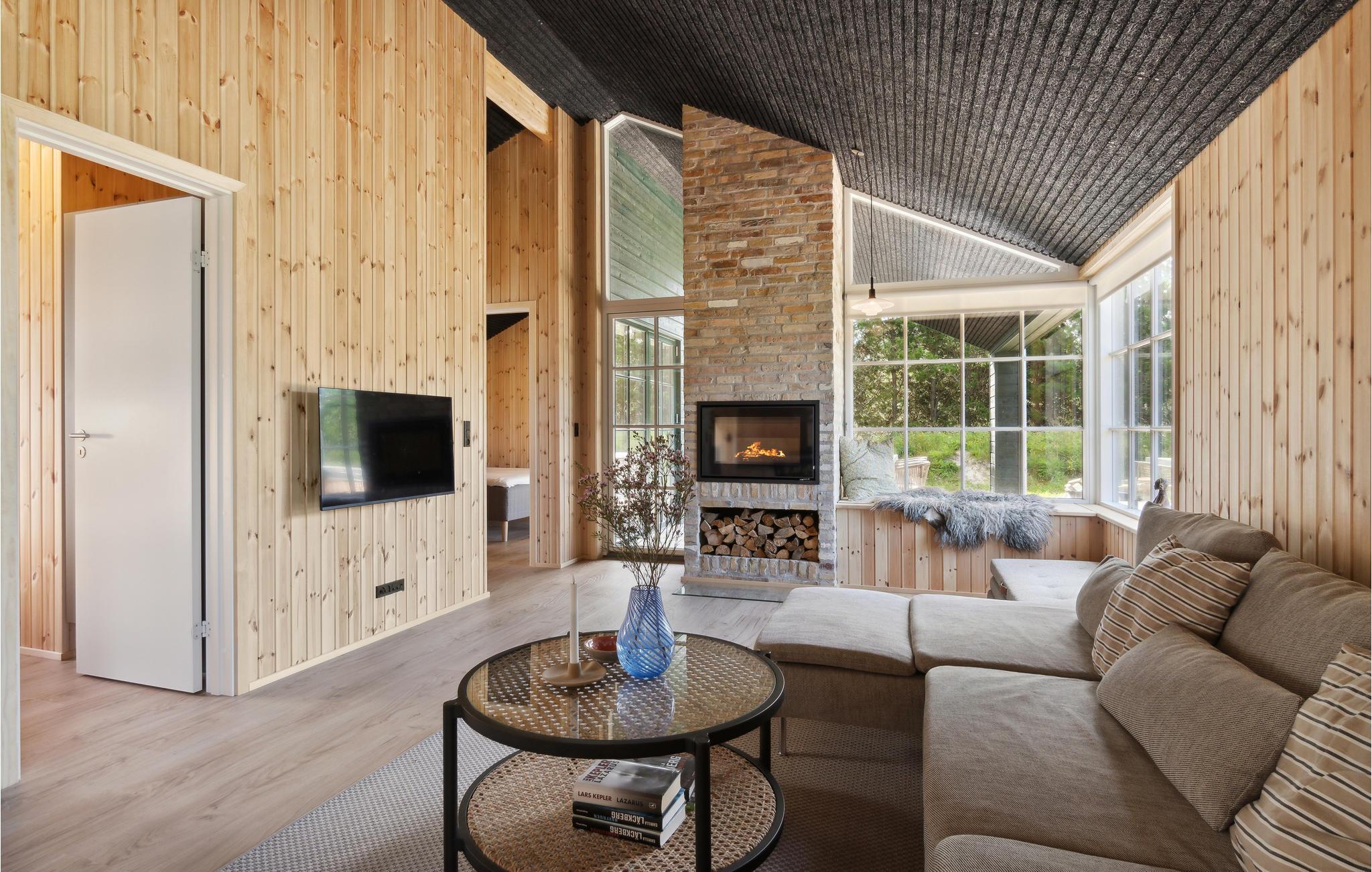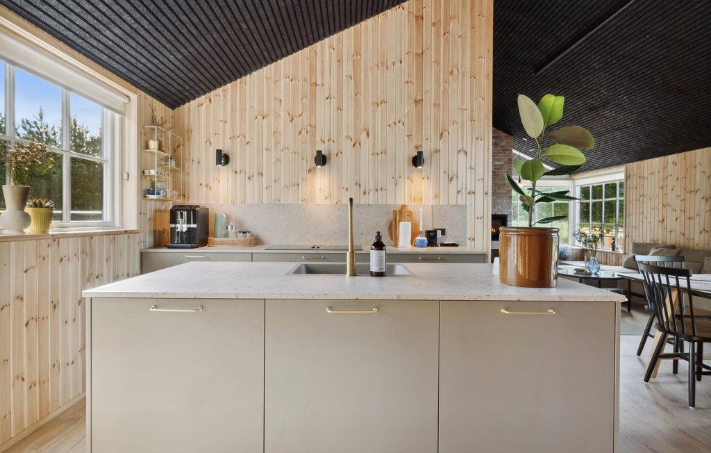 I kan begynde og slutte jeres feriedage med en gåtur ned til vandet fra dette skønne sommerhus, som blot ligger 600 meter fra Bratten Strand. Huset er i sig selv en del af ferieoplevelsen, for der kælet for alle detaljer i det arkitektoniske udtryk, naturmaterialerne og de hyggelige rammer, som udstråler ro og kvalitet. Fyld feriedagene med strandhygge, naturoplevelser og spændende udflugter og vend hjem til ild i brændeovnen og fredfyldte omgivelser.