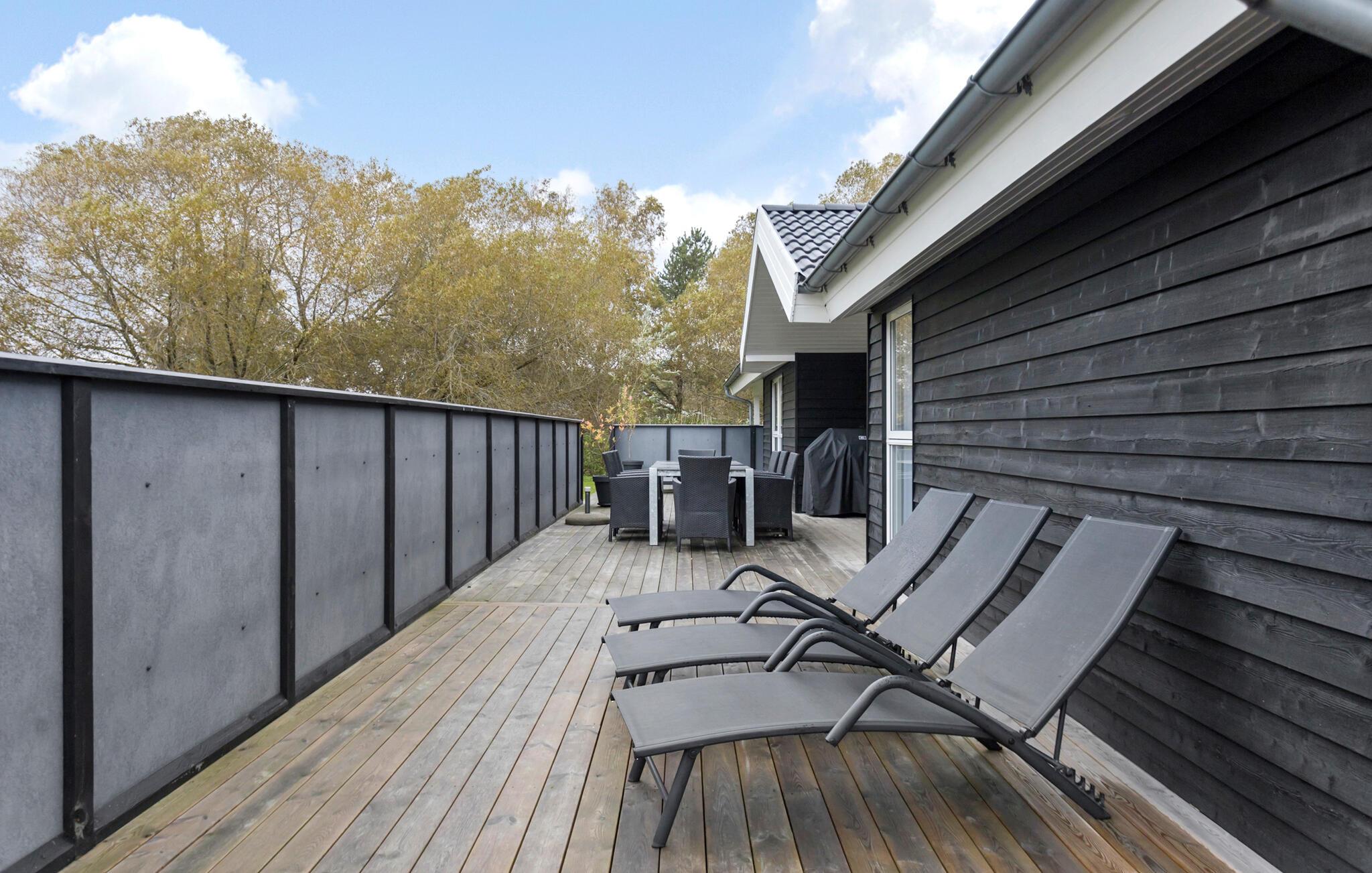 I kan også nyde en dejlig stund udenfor i vildmarksbadet, enten i solen eller under stjernerne. På den rummelige, afsides liggende grund venter den store træterrasse er det perfekte sted at samles til grillaftener og udendørs lege.