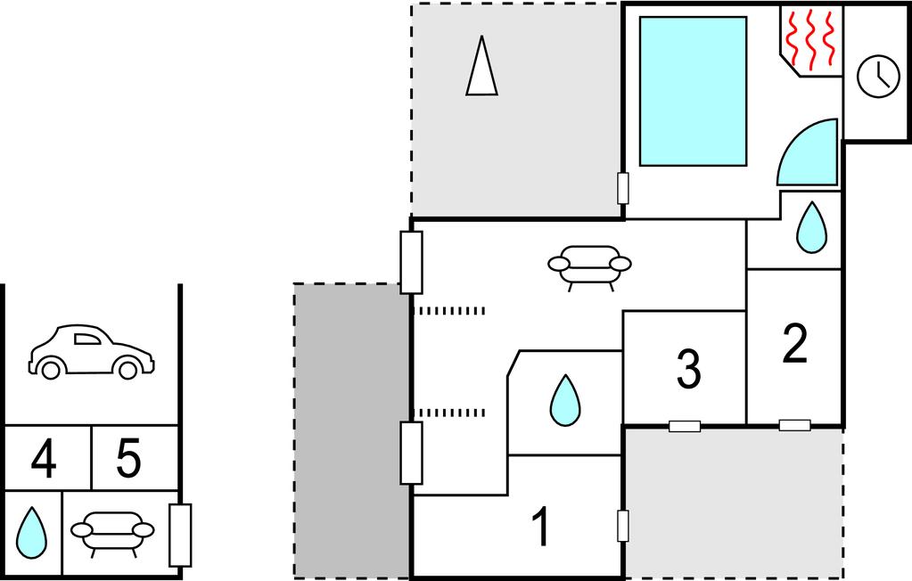 Badeværelse 4m2 (nr. 1) - WC. Varmt og koldt vand. Bruser