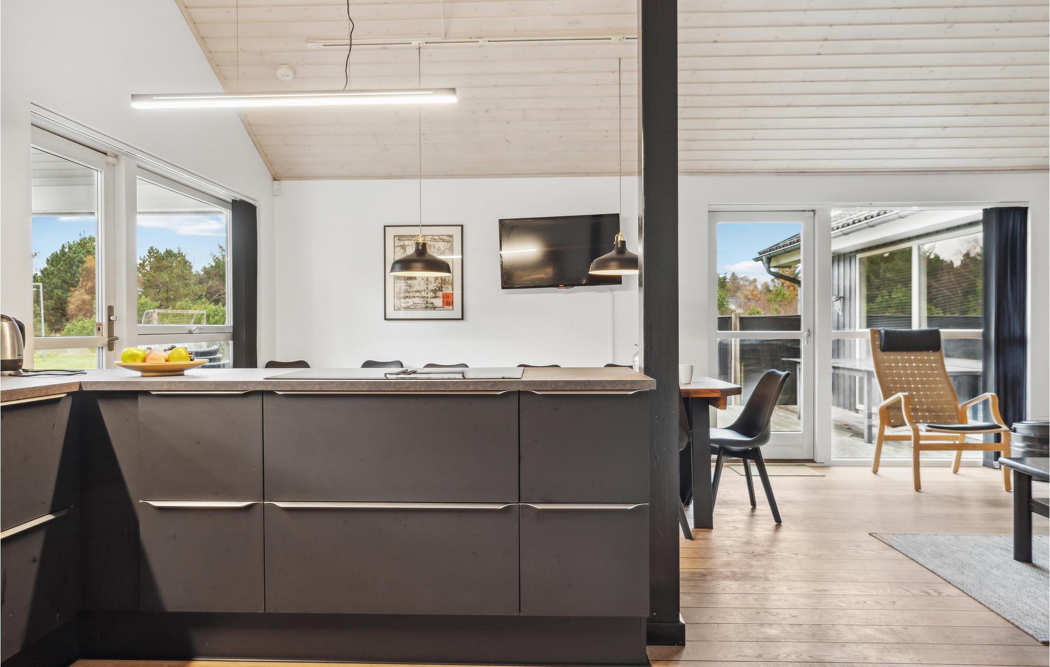 Tag afsted med en større gruppe og glæd jer til en herlig base i dette indbydende feriehus, der ligger en kort gåtur fra Kattegat. Huset byder på mange kvadratmeter og gode faciliteter, og med sin gennemtænkte indretning med en åben planløsning får I en dejlig oase, hvor I kan hvile stængerne og nyde hinandens gode selskab. Husets hjerte er det åbne opholdsrum, der forener stue og køkken og indbyder til mange hyggelige stunder. I pool-afdelingen kan hele familien plaske rundt og lege i mange timer. På de køligere dage kan I fyre op i brændeovnen og lade en dejlig feriedag gå på hæld med brætspil eller en god film.