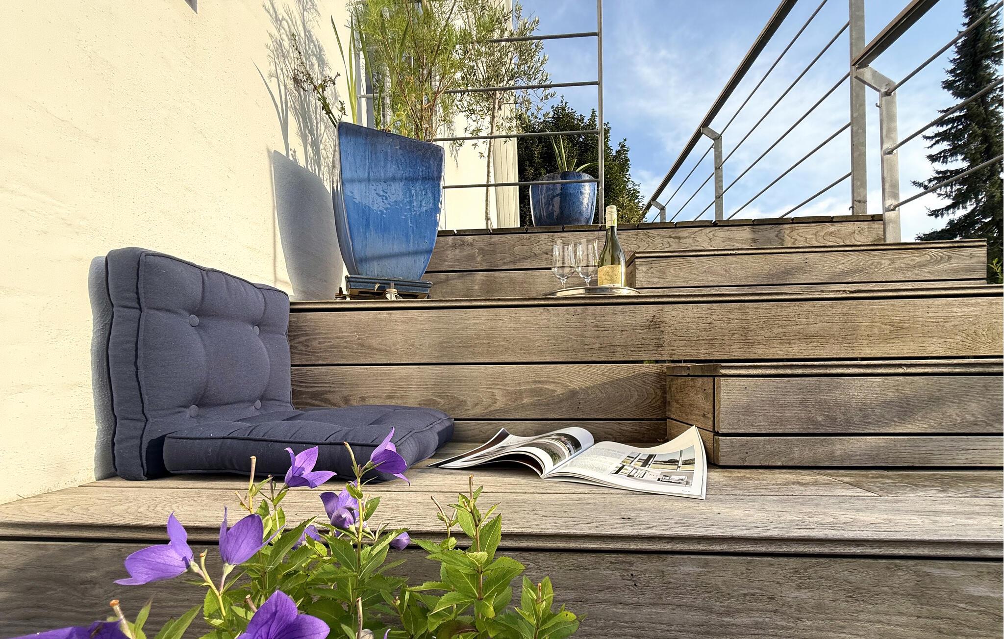Træd ud på terrassen ved de første solstråler og nyd ikke kun udsigten over vandet, men også naturens ro. Spis morgenmad her i varmt vejr eller find et sted i solen at læse. Om aftenen inviterer terrassen jer til at se solnedgangen.