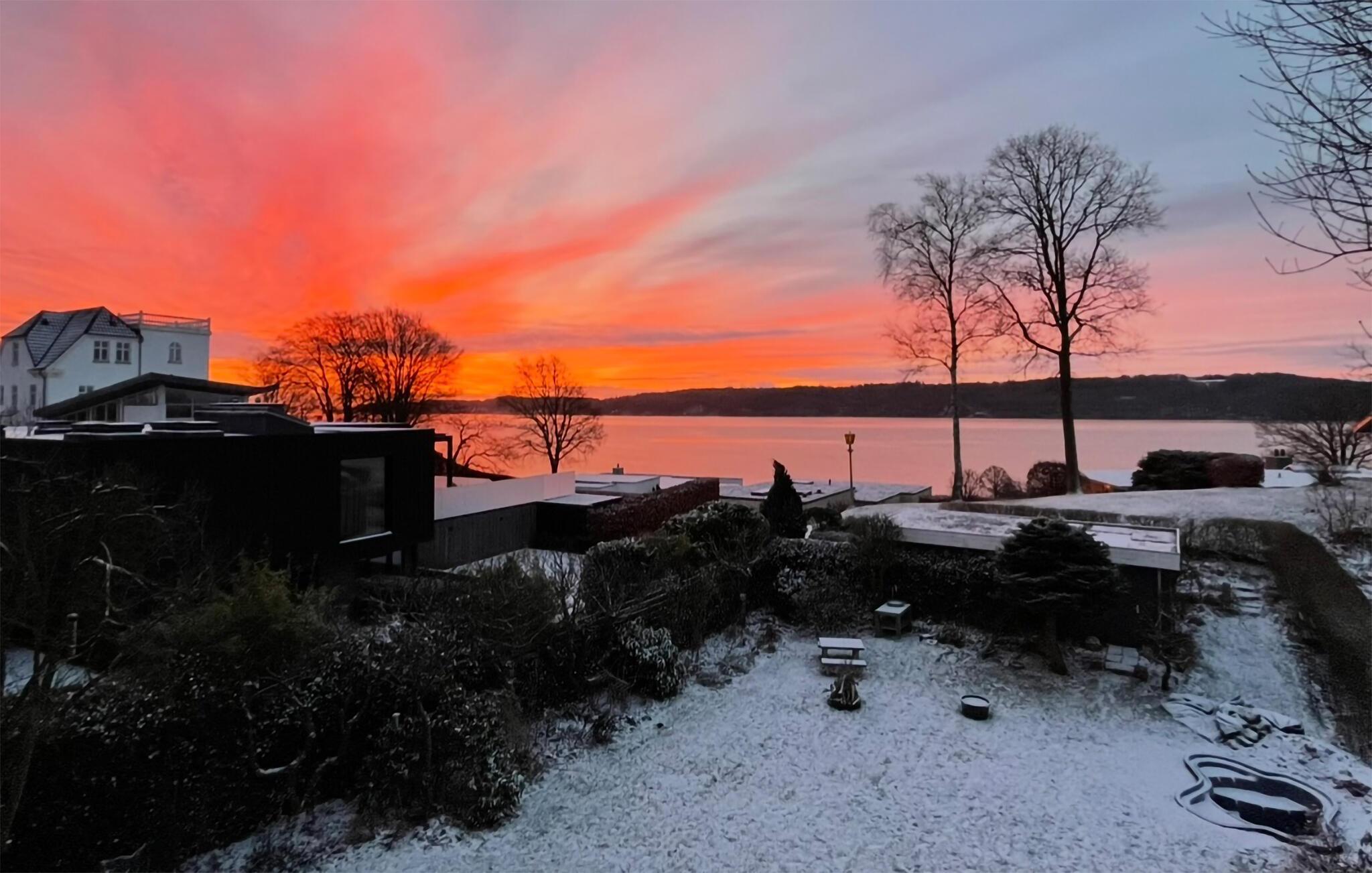 Denne indbydende lejlighed kombinerer harmonisk rummelighed og enkel elegance. Varmt naturligt lys strømmer ind gennem de store vinduer, mens I kan slappe af og nyde en smuk udsigt over fjorden. Tilbring afslappende timer på sofaen, lyt til god musik eller tilbered lækre måltider i det moderne køkken.