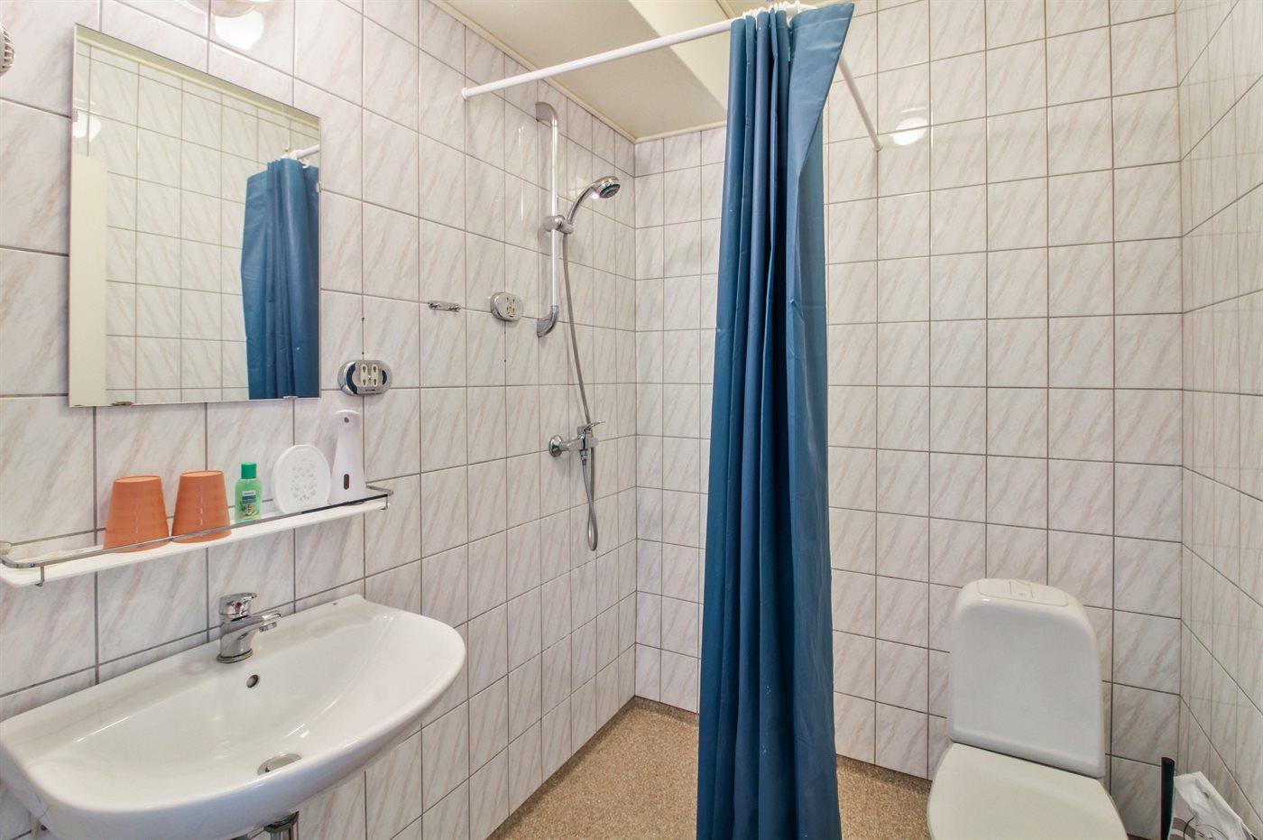 Der er 1 badeværelse med bruser og 1 toilet.