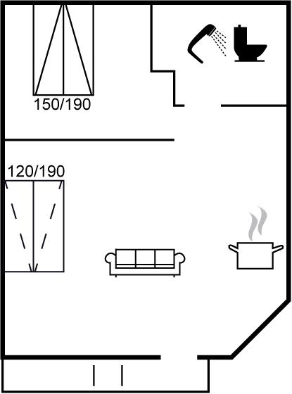 Der er i alt 1 soveværelse. Sovepladserne fordeler sig på: 2 sovepladser i dobbeltseng. 2 sovepladser i sovesofa (dobbelt).