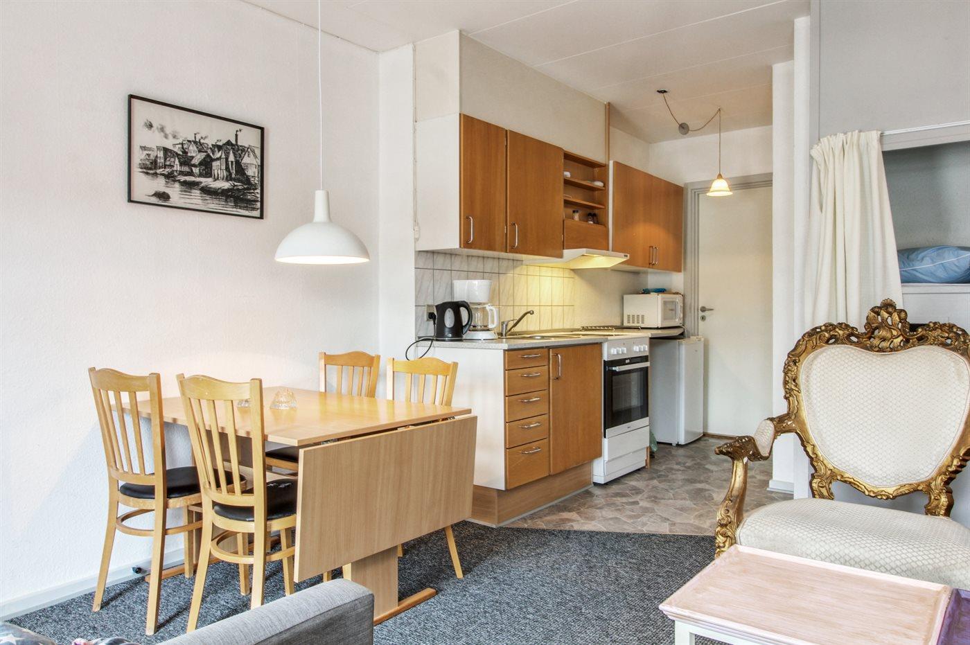 Køkkenet er udstyret med 1 køleskab. Der er 4 elkogeplader, bageovn, varmluftovn.