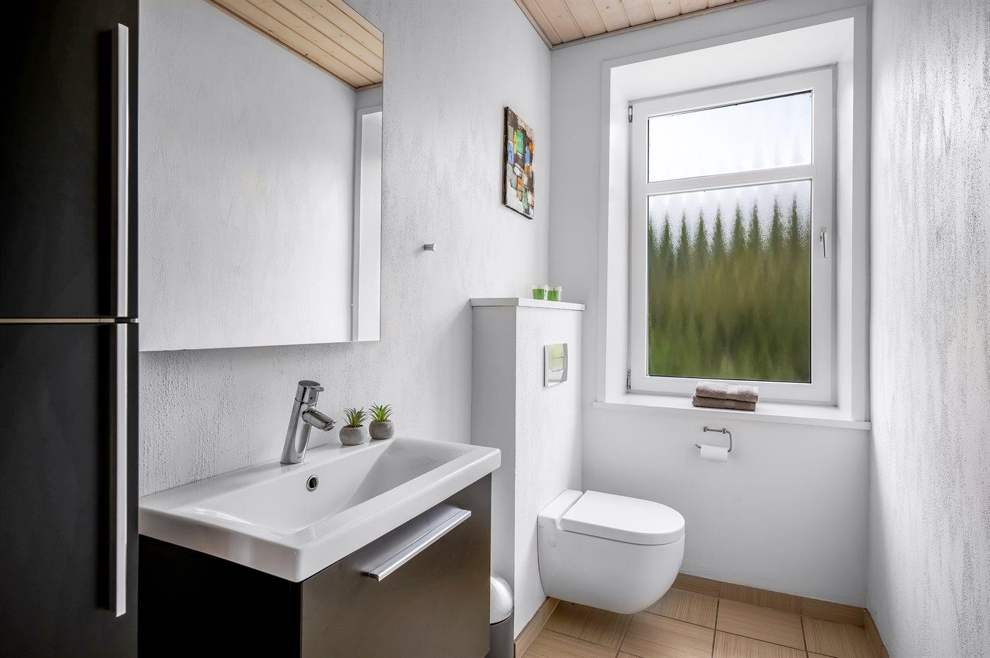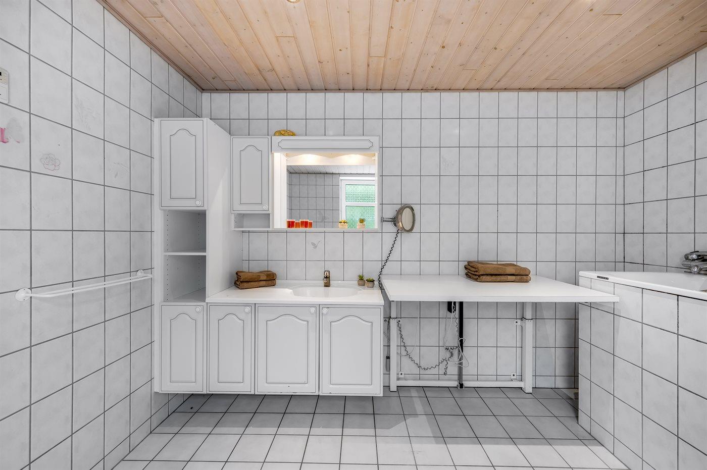 Der er 2 badeværelser med bruseniche og 3 toiletter, heraf 1 gæstetoilet. Der er gulvvarme på 2 badeværelser. Der er gulvvarme på gæstetoilettet.. Badekar.