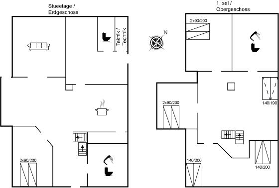 Der er i alt 5 soveværelser. Sovepladserne fordeler sig på: 6 sovepladser i dobbeltsenge. 4 sovepladser i enkeltsenge. 2 sovepladser i sovesofa (enkelt). 2 af disse sovepladser befinder sig i stuen.