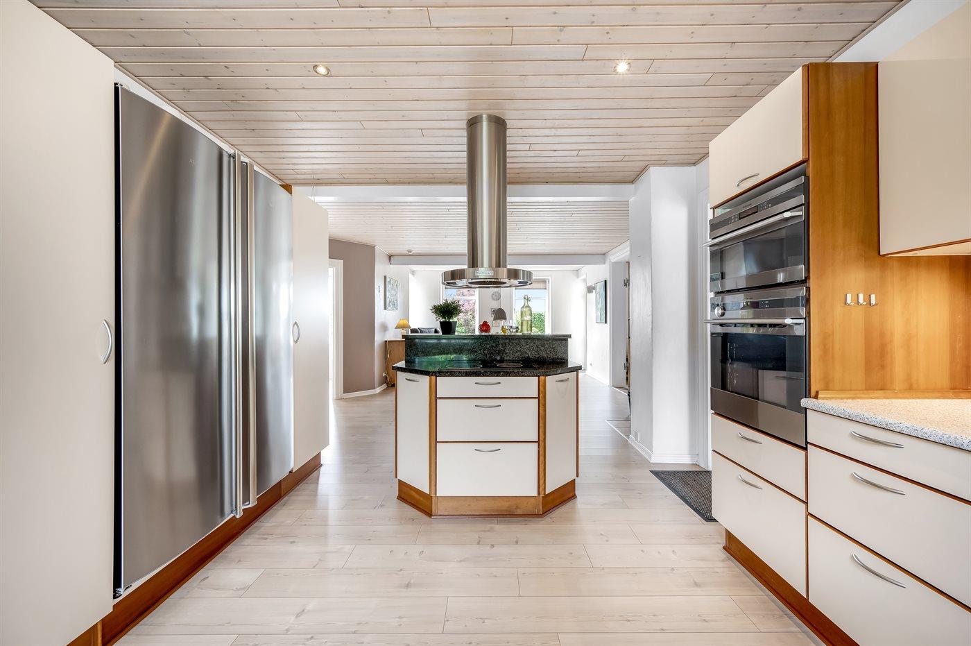 Køkkenet er udstyret med 1 køleskab. Der er 4 induktionskogeplader, varmluftovn, mikrobølgeovn samt opvaskemaskine.