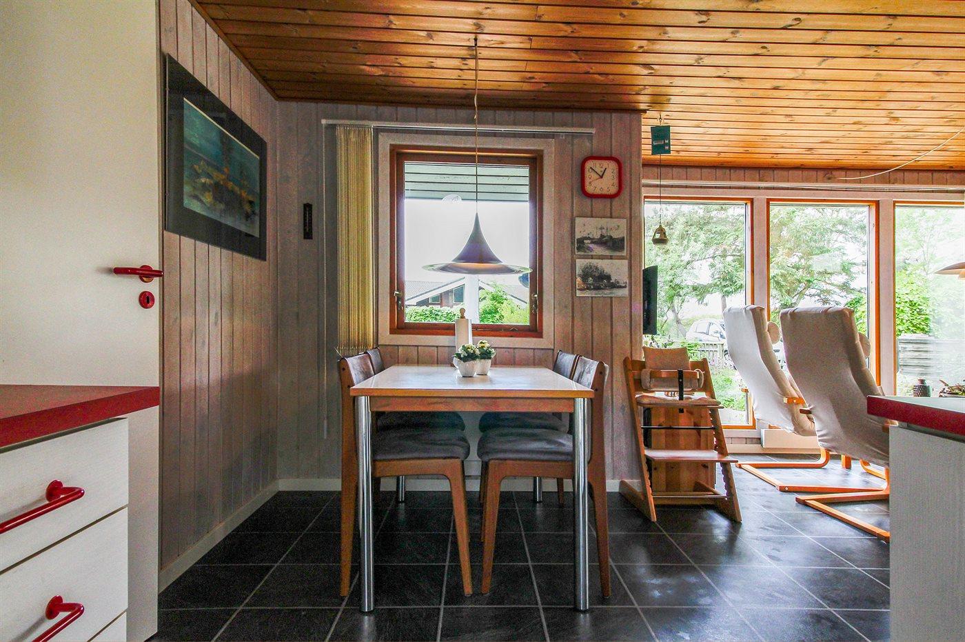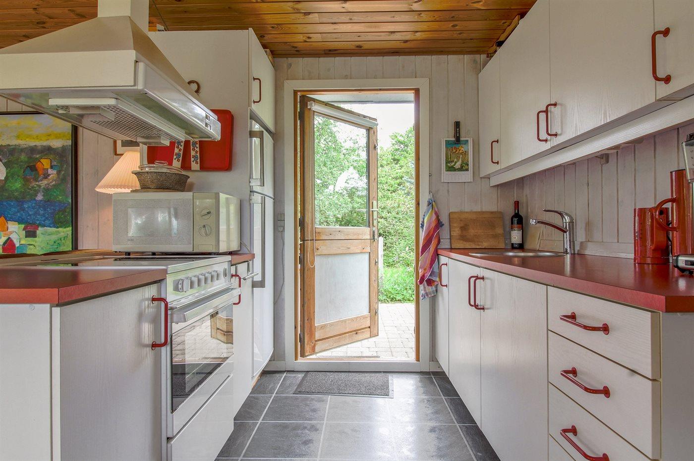 Køkkenet er udstyret med 1 køleskab. Der er 4 keramiske kogeplader, varmluftovn, mikrobølgeovn, Airfryer samt opvaskemaskine.