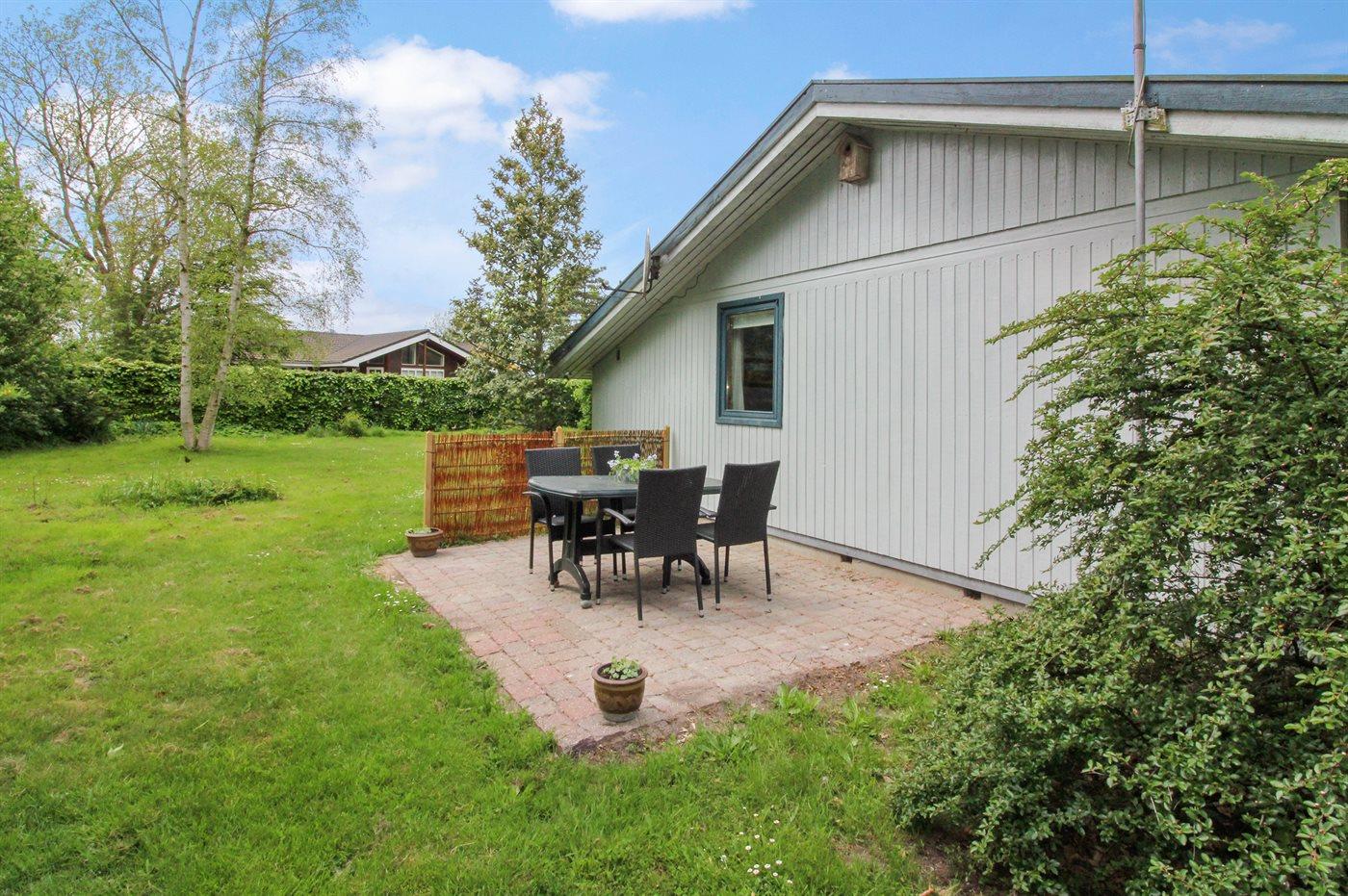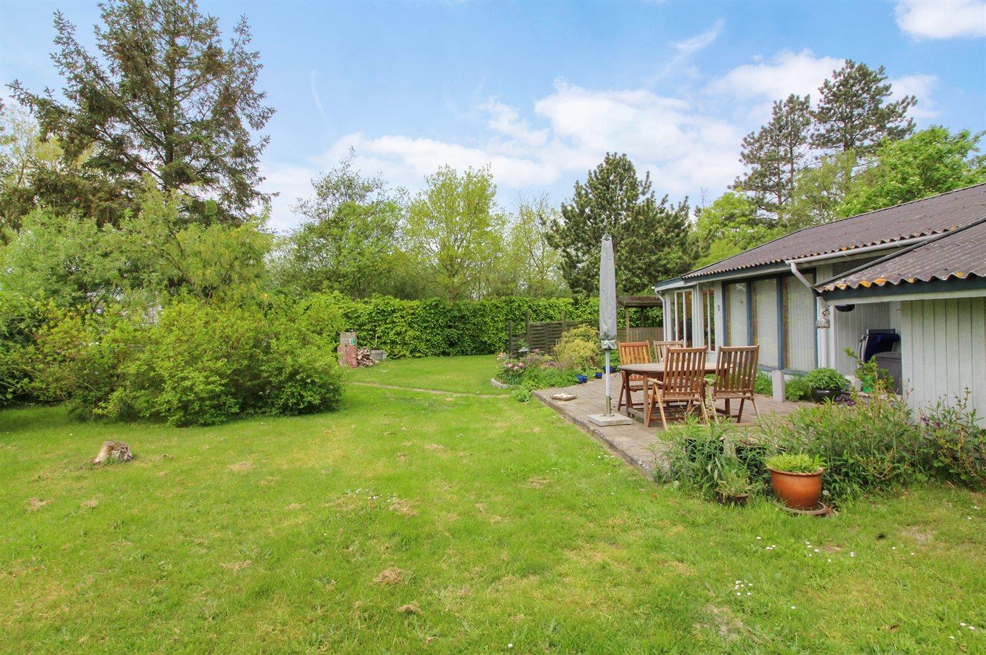 Ferieboligen er beliggende på en 1116 m² stor havegrund. Der er 180 m til havet. Der er en badebro i nærheden. Nærmeste forretning er beliggende i en afstand af 4000 m. Til ferieboligen hører 60 m² terrasseareal. Ligeledes er der adgang til udestue på ca. 20 m2. Der er redskabsrum. Gynge. Sandkasse. Legehus. Rutchebane. Fodboldmål. Bålsted. Udendørs bruser. Parkering ved ferieboligen.