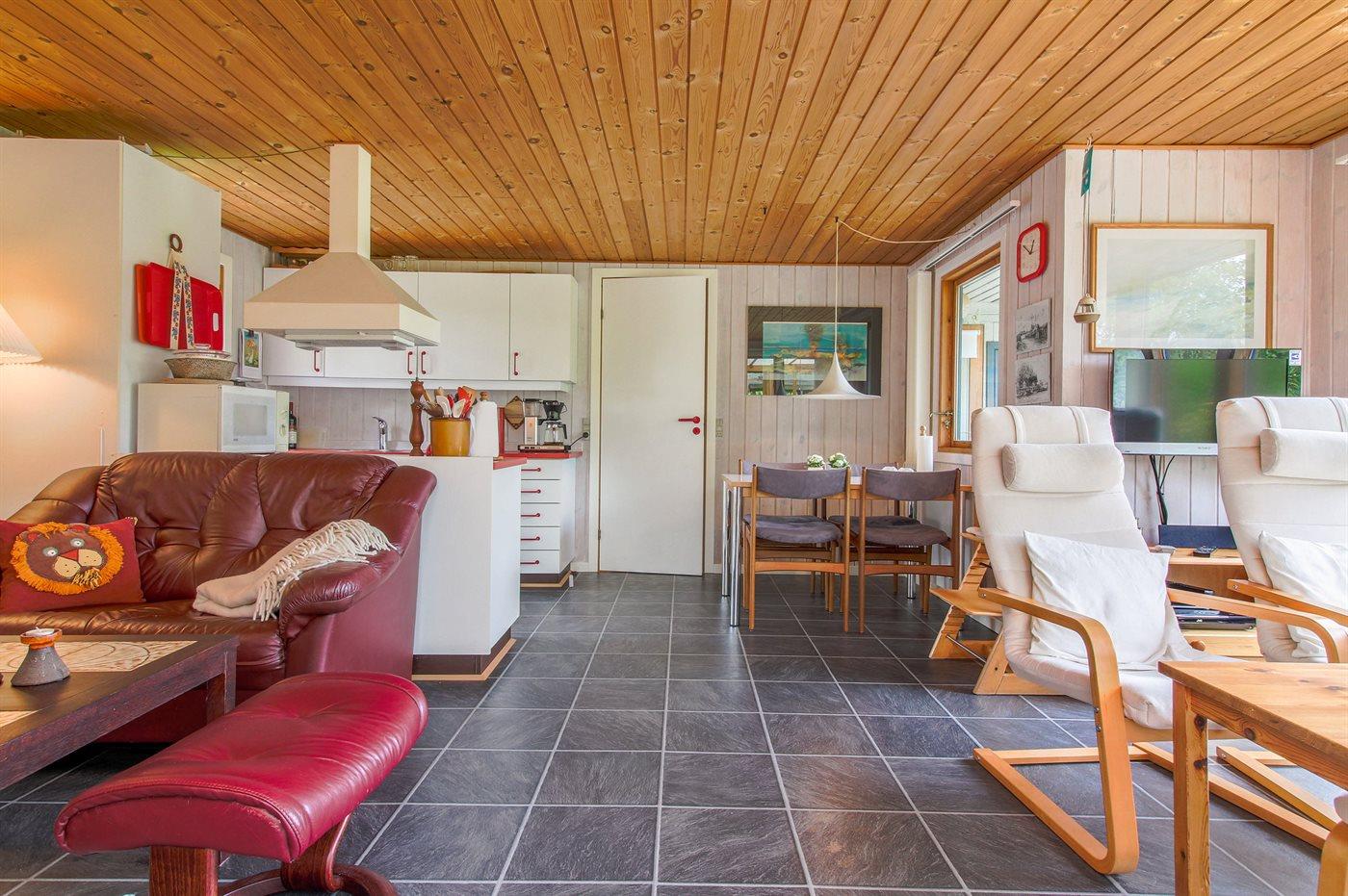 Hyggeligt ældre sommerhus beliggende på en dejlig lukket grund tæt ved vandet.