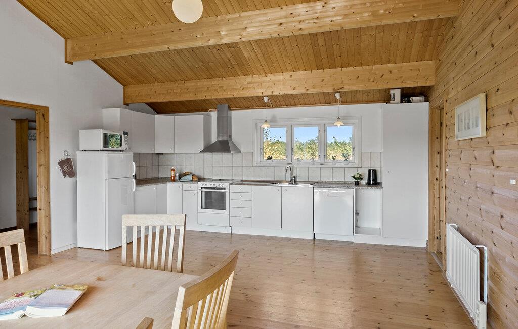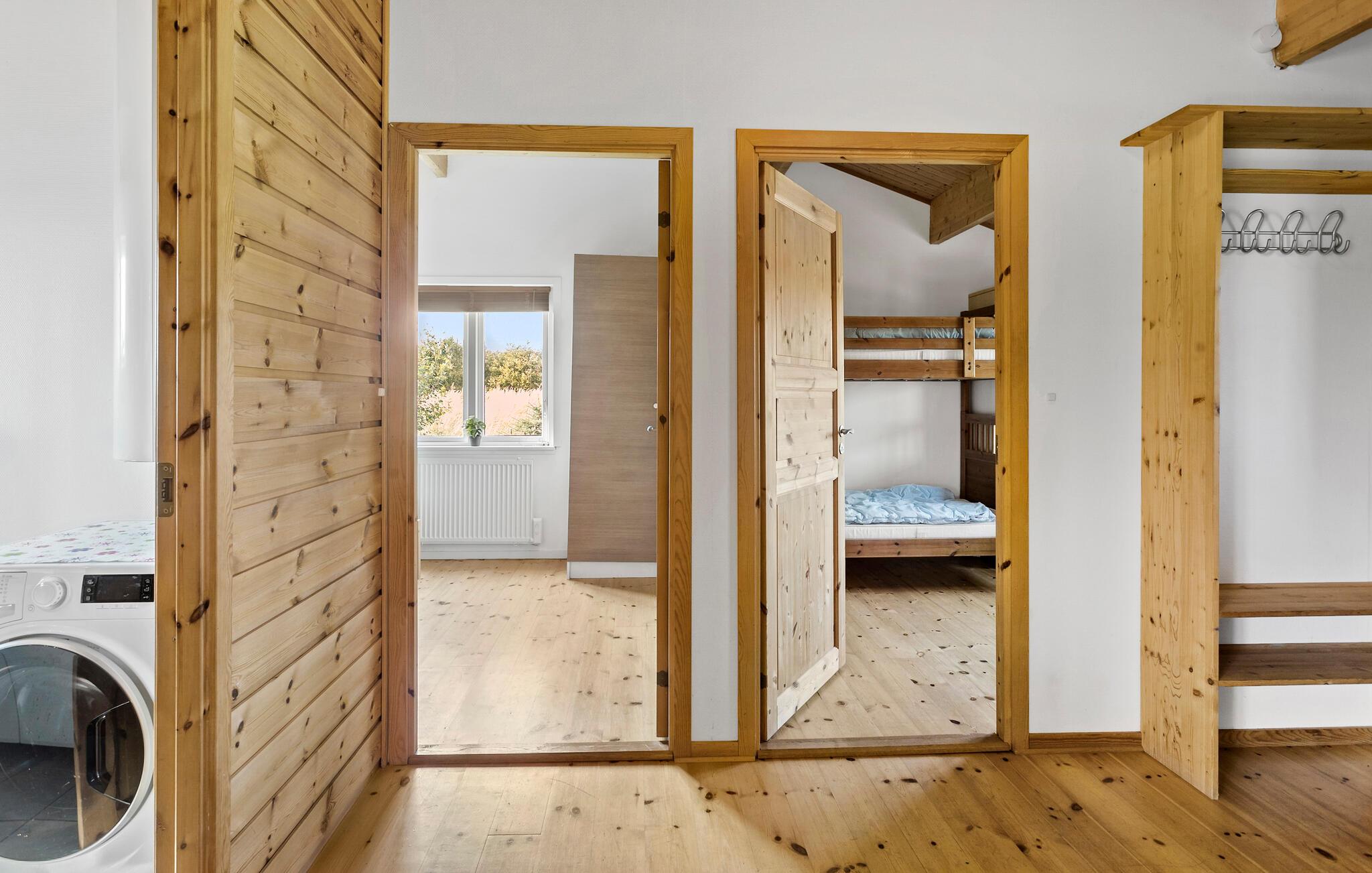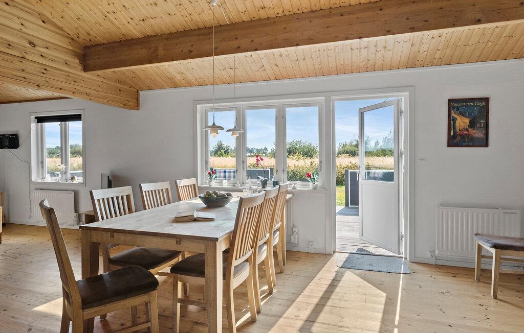 Velkommen til Lollands sydkyst tæt ved Rødby færgehavn, hvor I får det optimale udgangspunkt for at udforske øens mange attraktioner og skønne natur. Huset har en helt særlig atmosfære med vægt på naturmaterialer og træets varme farve, der er gennemgående. Dæk op i det store, indbydende opholdsrum og nyd dagens måltider, mens I kigger ud på det åbne landskab. Her sænker skuldrene sig automatisk, for stedet emmer af fred og idyl.