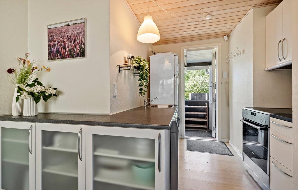 Dette feriehus på Lolland er et ideelt sted for en afslappende pause væk fra den travle hverdag. Omgivet af frodig grøn natur kan I nyde afslapning i naturskønne omgivelser. Husets interiør er hyggeligt og funktionelt designet. Find jer godt til rette i sofaen i opholdsstuen og nyd udsigten udenfor eller slap af med en film eller en bog. Der er plads til alle ved spisebordet til fælles måltider, som I kan tilberede i det tilstødende, åbne køkken. Møblerne er lyse, indbydende og kærligt afstemt.