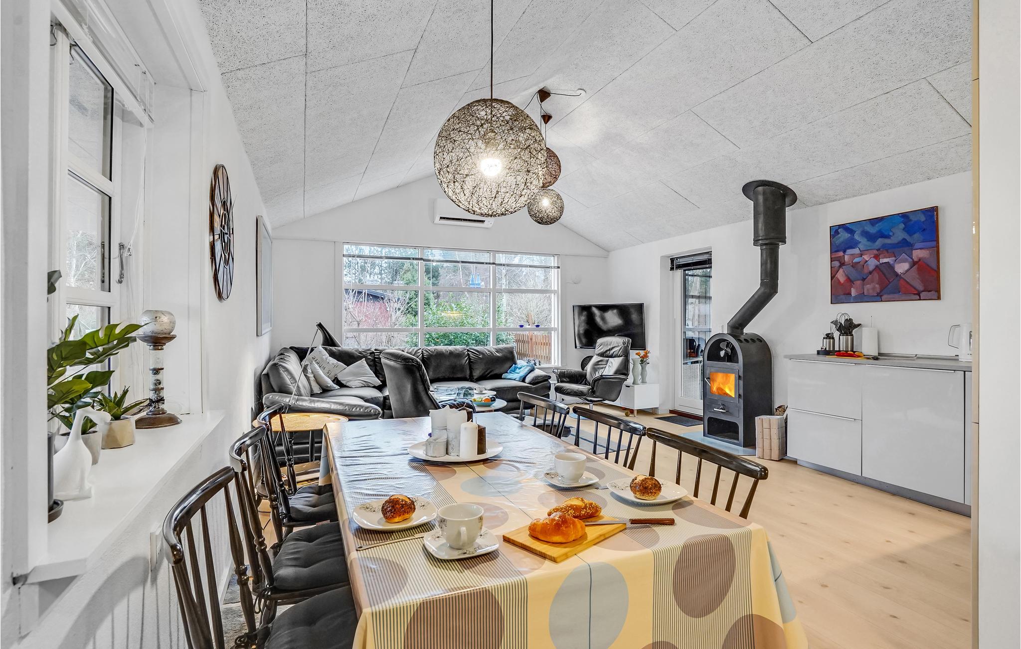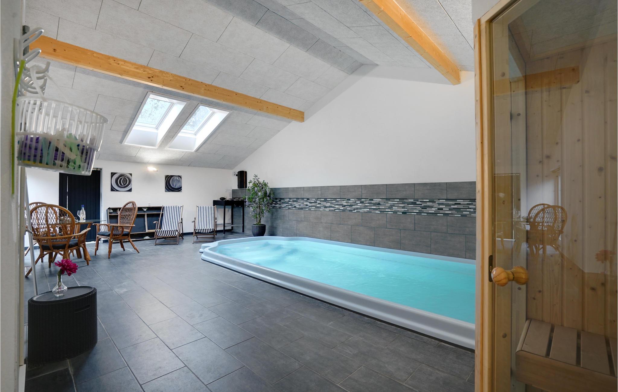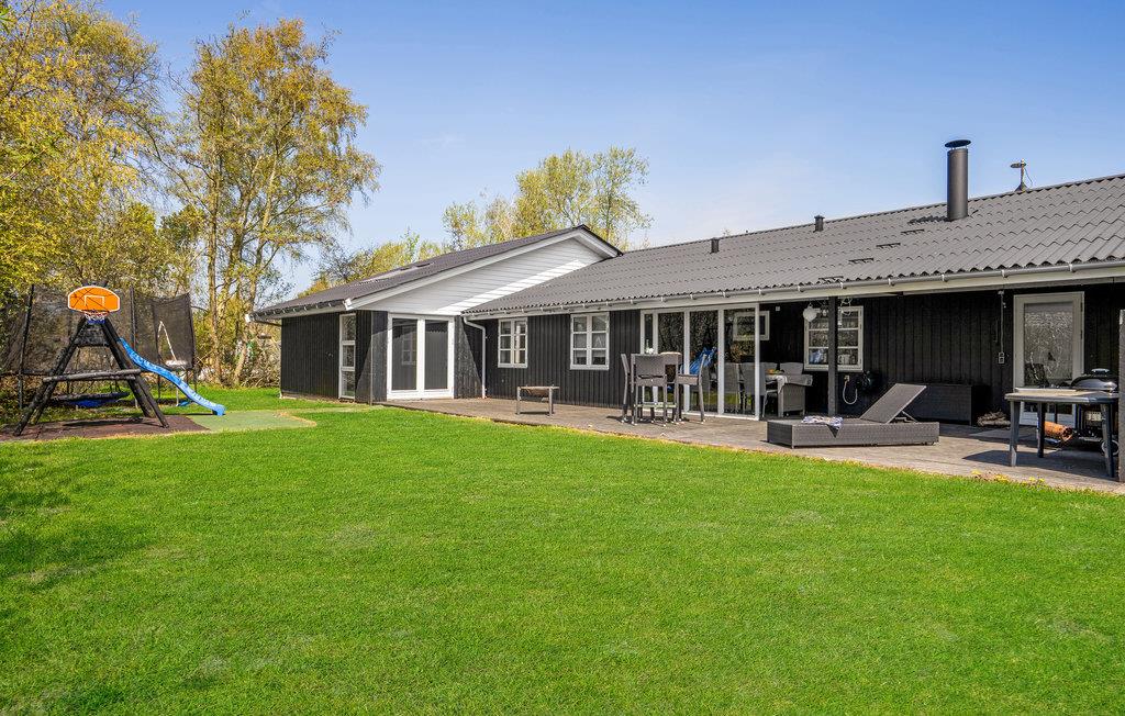 Husets poolafdeling er rigtig flot og indeholder også en stor sauna samt et cafébord med stole, hvor I kan sidde og hyggesnakke og se på de badende. I kan se frem til at tilbringe masser af kvalitetstid sammen i det store, veludstyrede køkken, der ligger i åben forbindelse til opholdsstuen. Glæd jer til at afslutte en sjov og aktiv dag med en middag ved spisebordet, før I lader jer synke ned i sofaen og nyder varmen fra brændeovnen, eller ser en god film sammen. Forlæng de lune sommeraftener på den dejlige overdækkede terrasse, hvor I kan sidde og hygge jer, selv efter duggen er faldet. Familiens yngste medlemmer vil helt sikkert elske den lukkede have med legetårn og masser af plads til sjov og leg.