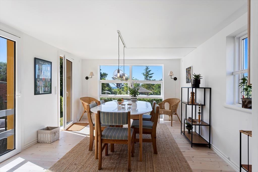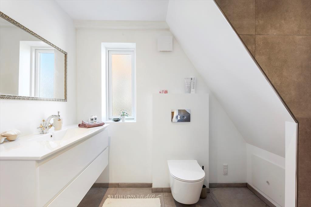 Sommerhusets badeværelse er også nyrenoveret og indrettet med stil og komfort i tankerne. Det lækre brusebad giver dig mulighed for at nyde et afslappende bad efter en aktiv dag i naturen eller på stranden. Den moderne indretning med smukke fliser og kvalitetsmaterialer gør badeværelset til et luksuriøst sted at starte eller afslutte dagen. Fra fantastisk hyggelige stue på 1. sal kan du nyde en betagende udsigt til vandet. En ekstra bonus ved dette sommerhus er hemsen, der fungerer som et charmerende legerum for børnene. Her kan de lade deres fantasi få frit spil, mens de skaber deres egne eventyr. Hemsens hyggelige atmosfære gør det til et populært sted for børnene at tilbringe tid, mens de voksne kan få lidt ro.