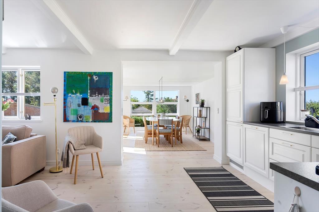 Sommerhuset byder på en hyggelig og rummelig stue i åben forbindelse med et moderne køkken/alrum. Her er det nemt at skabe de perfekte rammer for samvær. Den lyse og indbydende stue er ideel til afslapning, uanset om du vil hygge dig med en god film, læse en bog eller bare nyde en kop kaffe og de fredelige omgivelser. Køkkenet er nyistandsat og udstyret med moderne faciliteter, som gør madlavningen til en fornøjelse. Alrummet giver plads til at samles til måltider, lege eller bare slappe af sammen.
