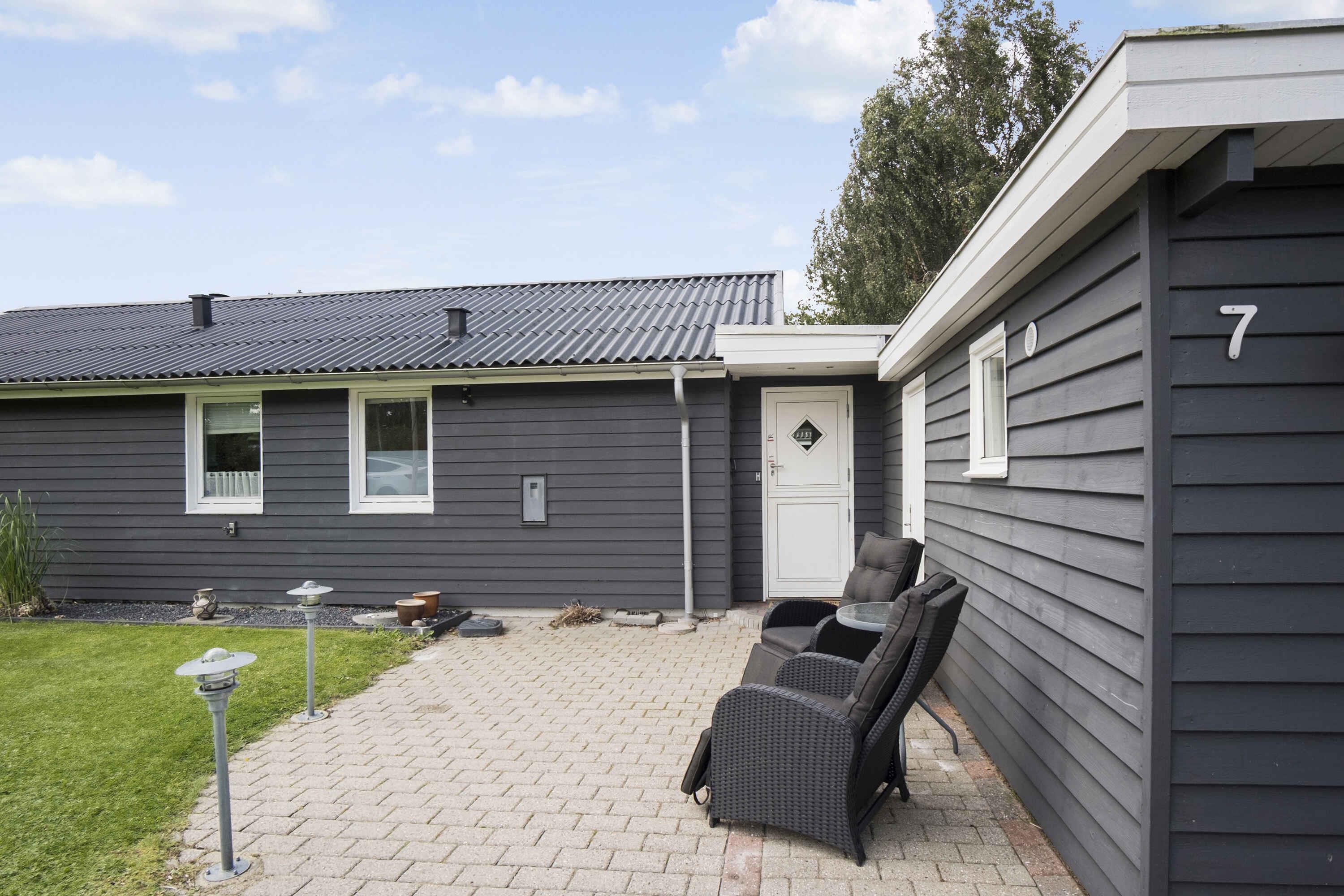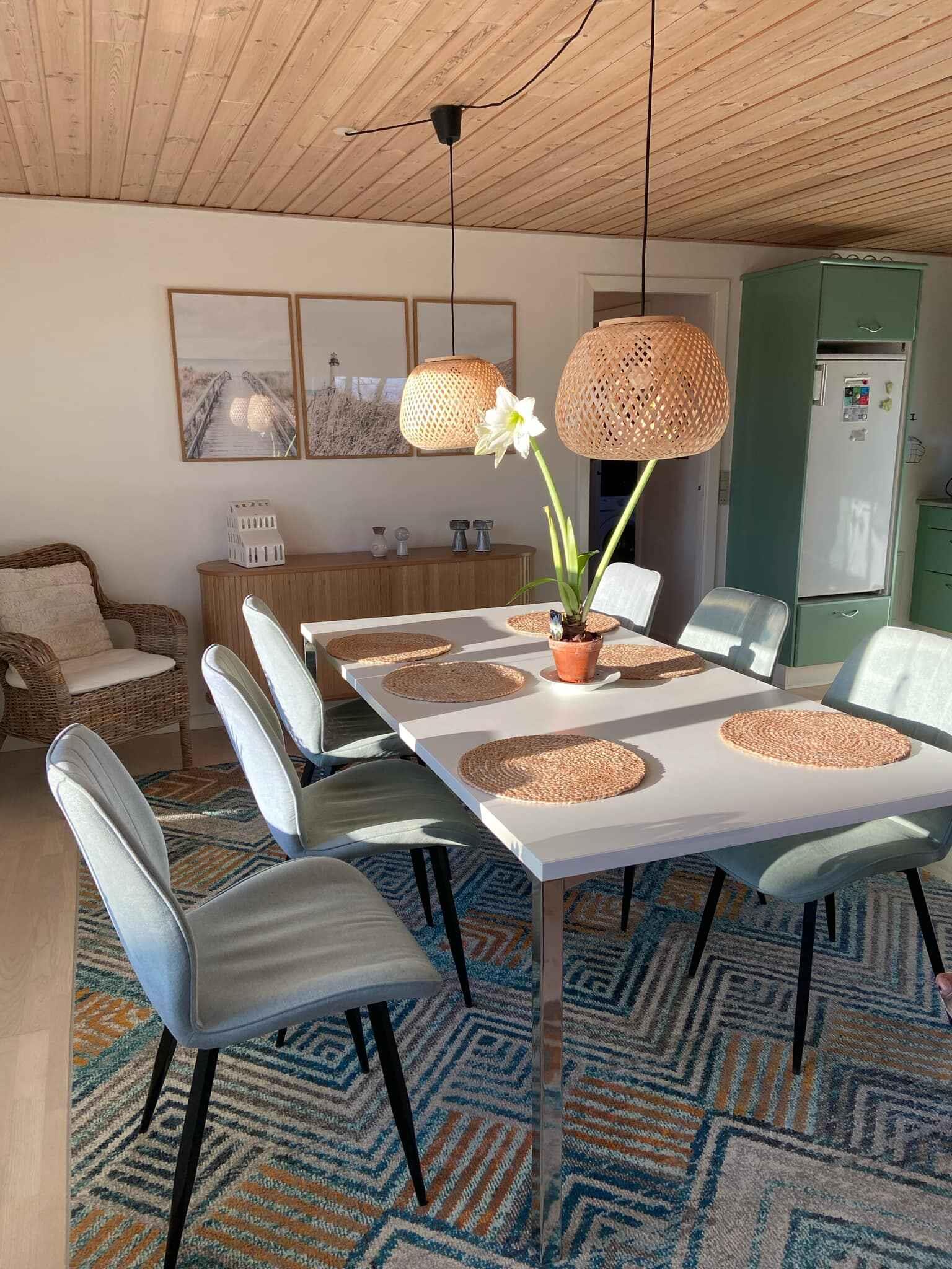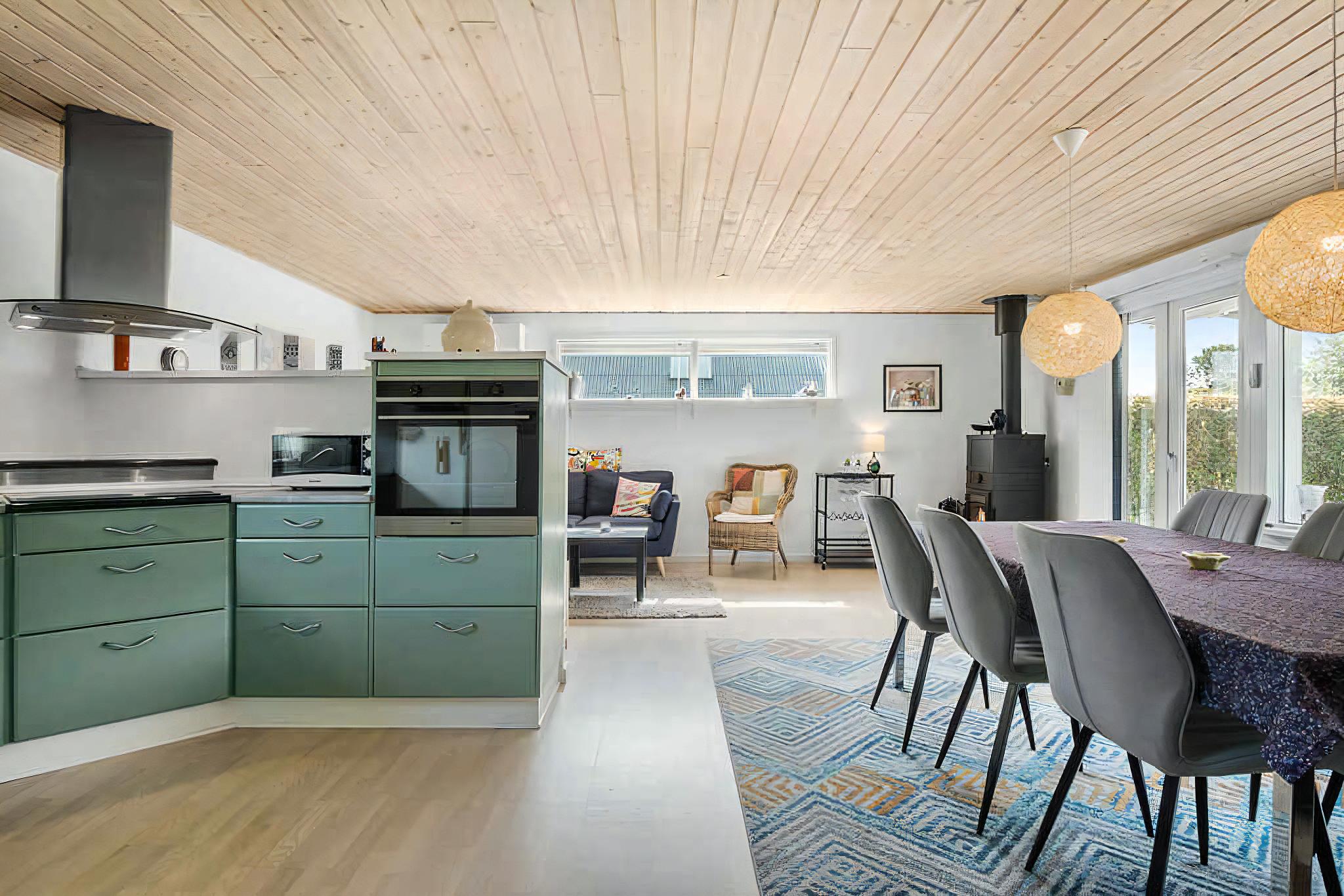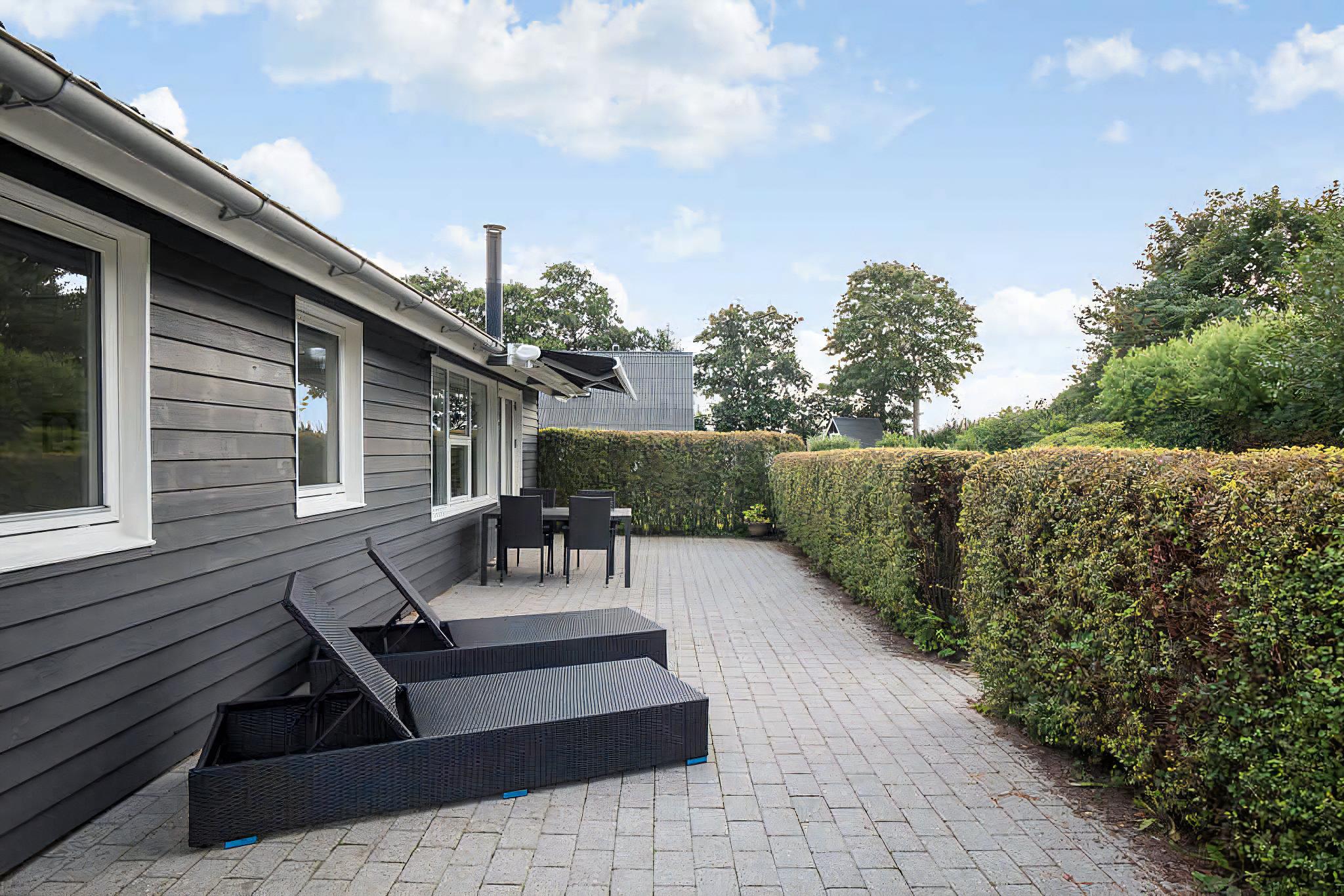 Nyrenoveret sommerhus i Brenderup tæt på strand, med stor terrasse og moderne køkken til 2026-sæsonen.