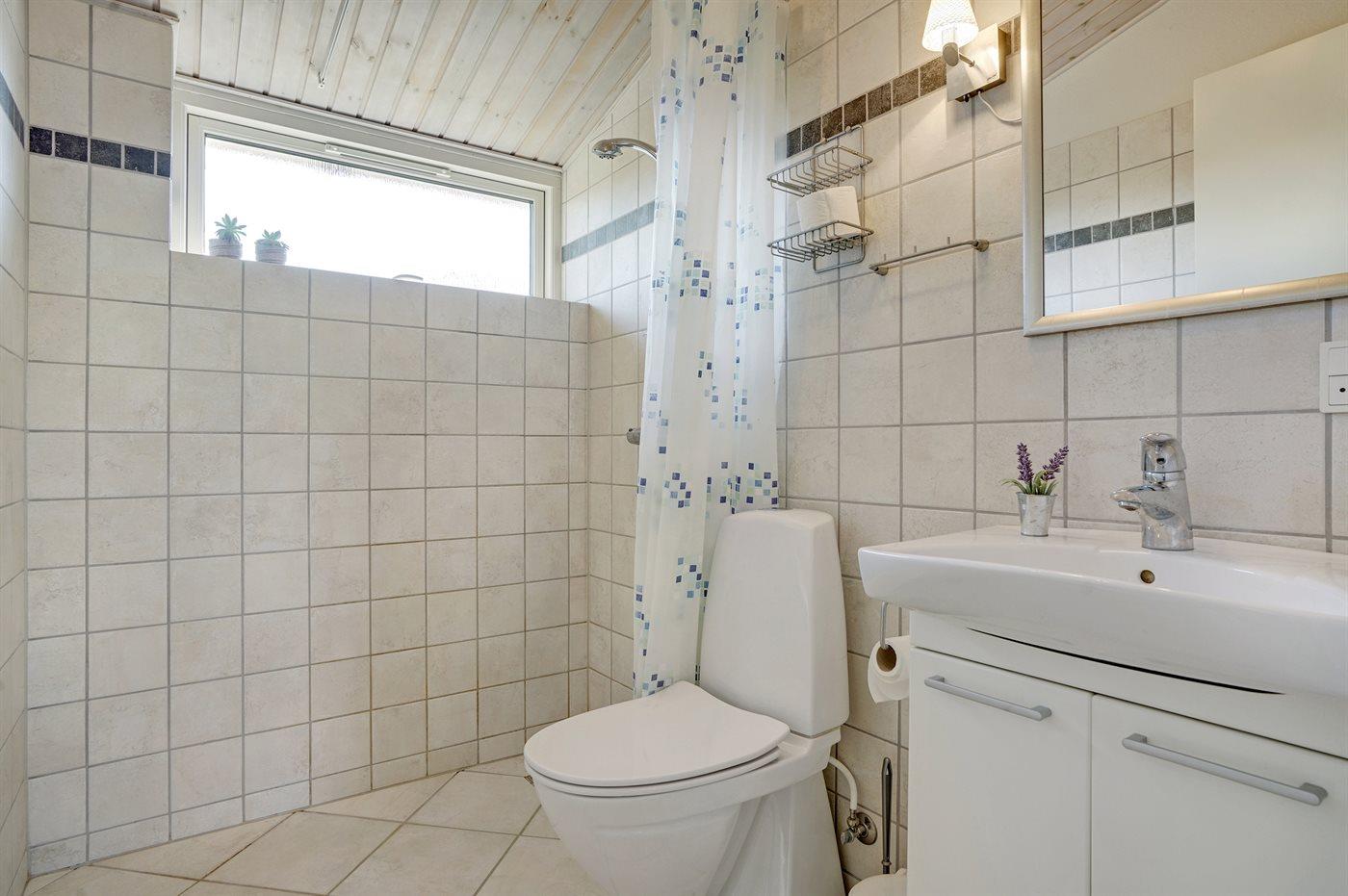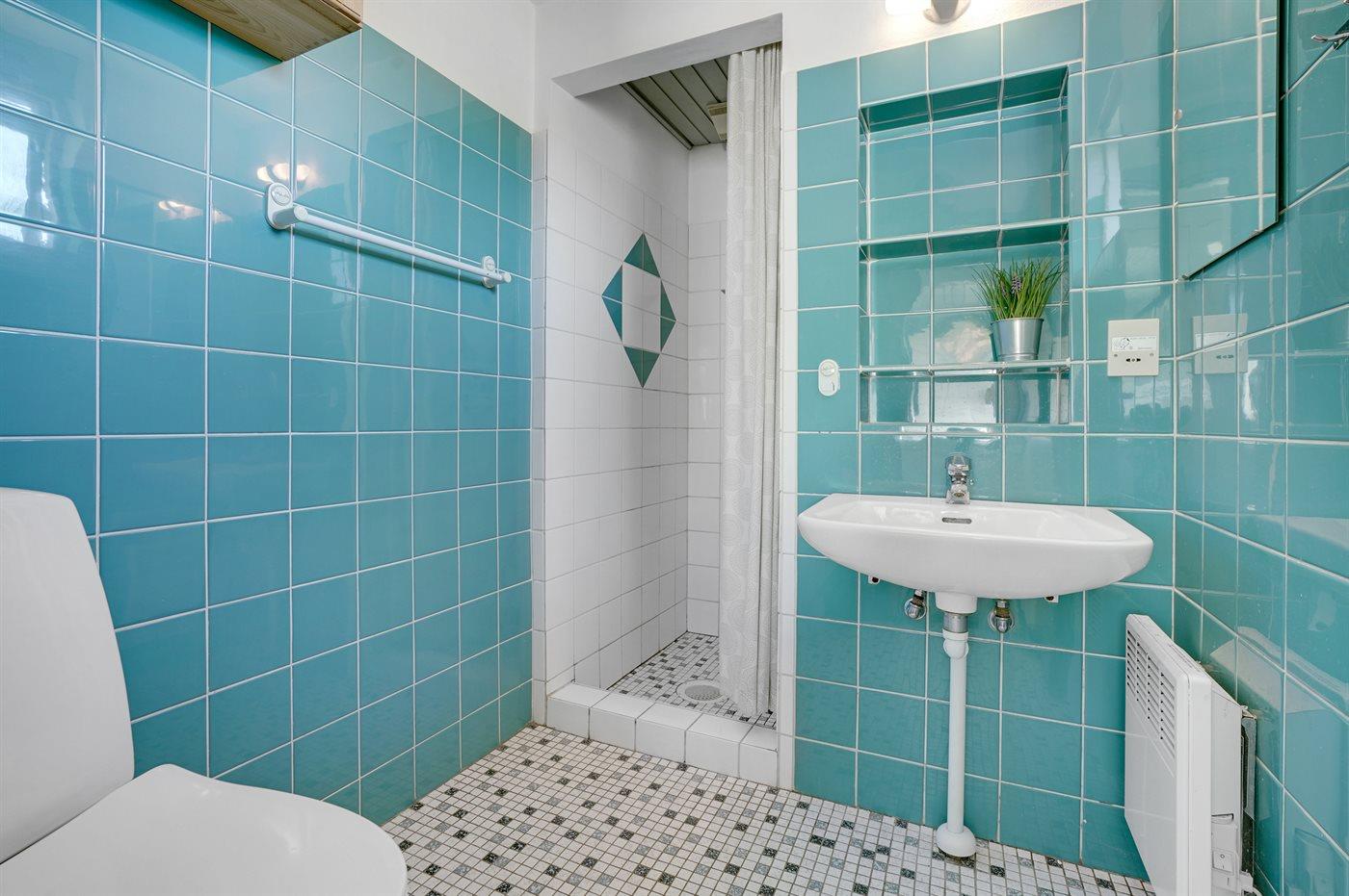 Der er 2 badeværelser med bruseniche og 2 toiletter. Der er gulvvarme på 1 badeværelse.
