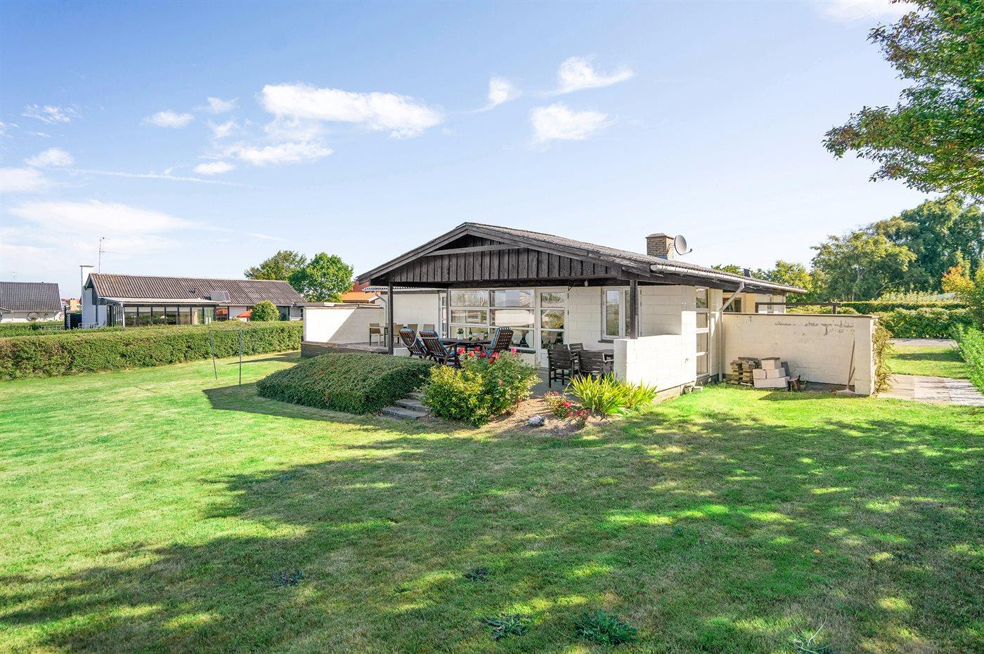 Skønt sommerhus i børnevenligt område tæt på badestrand med stor legeplads og dejlige terrasser.
