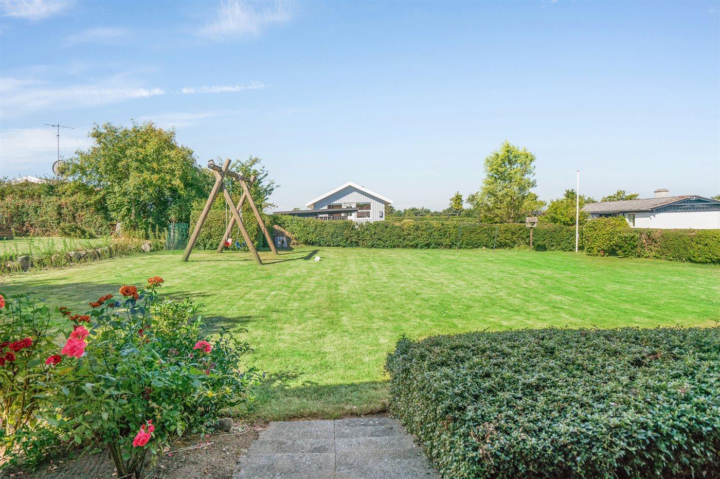 I et meget børnevenligt kvarter ligger dette skønne og rummelige sommerhus tæt på badestrand og med stor legeplads i nærheden.