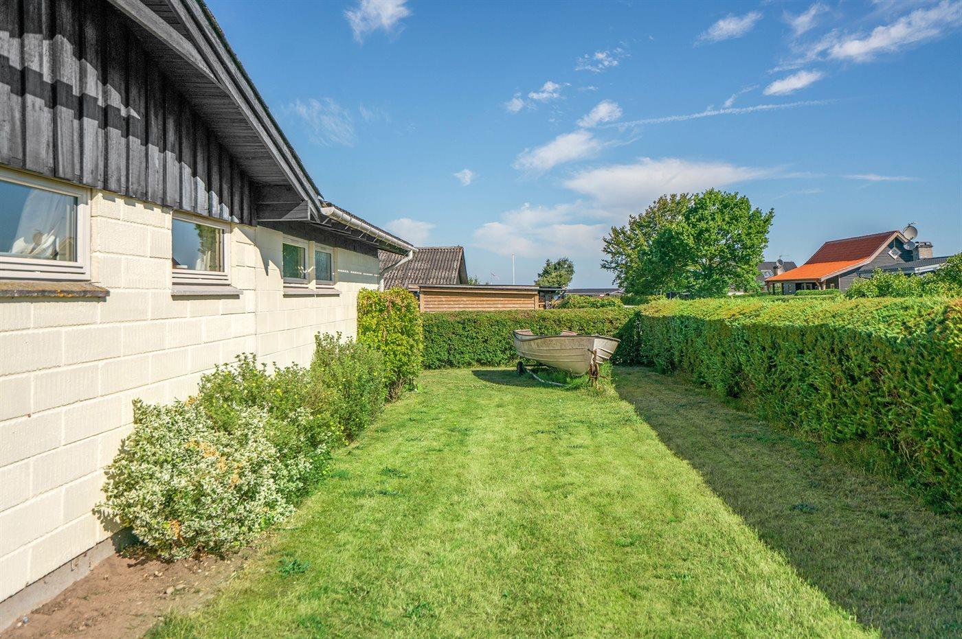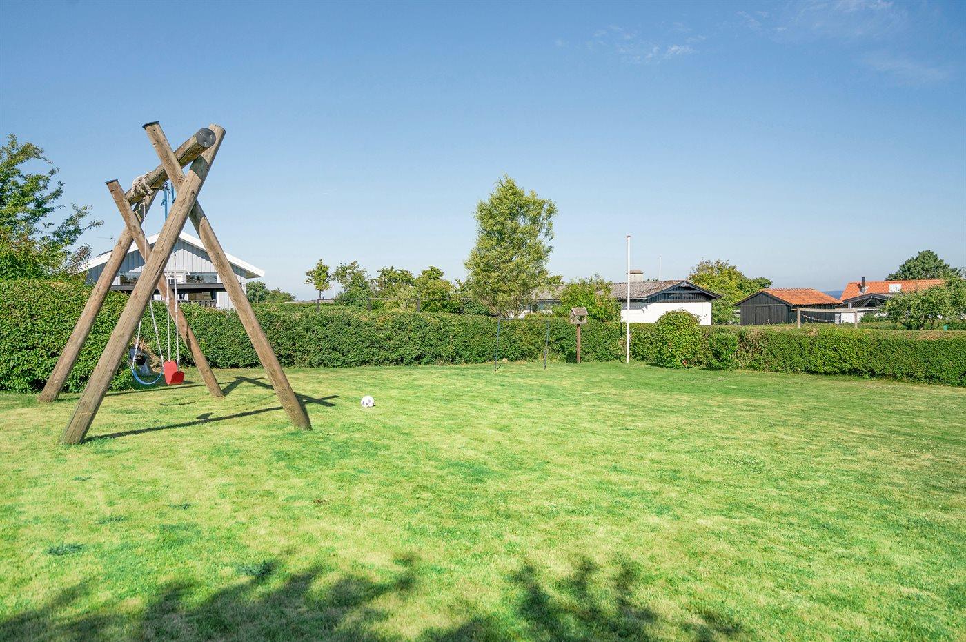 Ferieboligen er beliggende på en 984 m² stor havegrund. Der er 200 m til havet. Nærmeste forretning er beliggende i en afstand af 4000 m. Til ferieboligen hører 15 m² terrasseareal. Desuden er der 21 m² overdækket terrasse. Der er redskabsrum. Gynge. Sandkasse. Parkering ved ferieboligen.