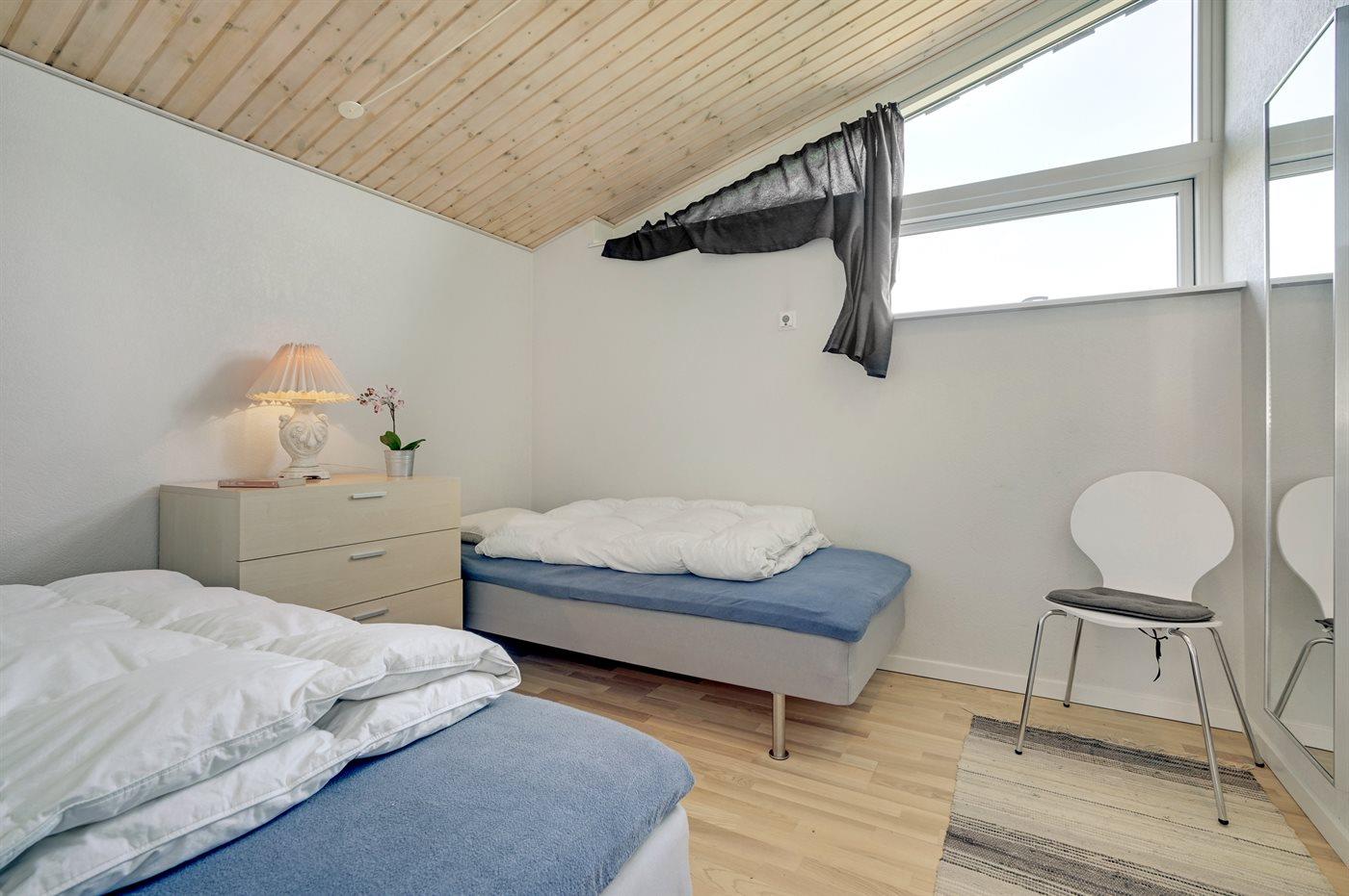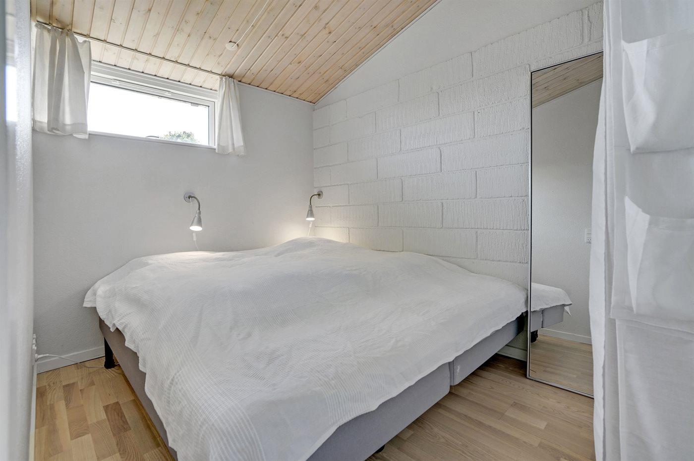 Der er i alt 4 soveværelser. Sovepladserne fordeler sig på: 4 sovepladser i dobbeltsenge. 2 sovepladser i enkeltsenge. 2 sovepladser i køjeseng. Derudover er der 1 stk. barneseng.