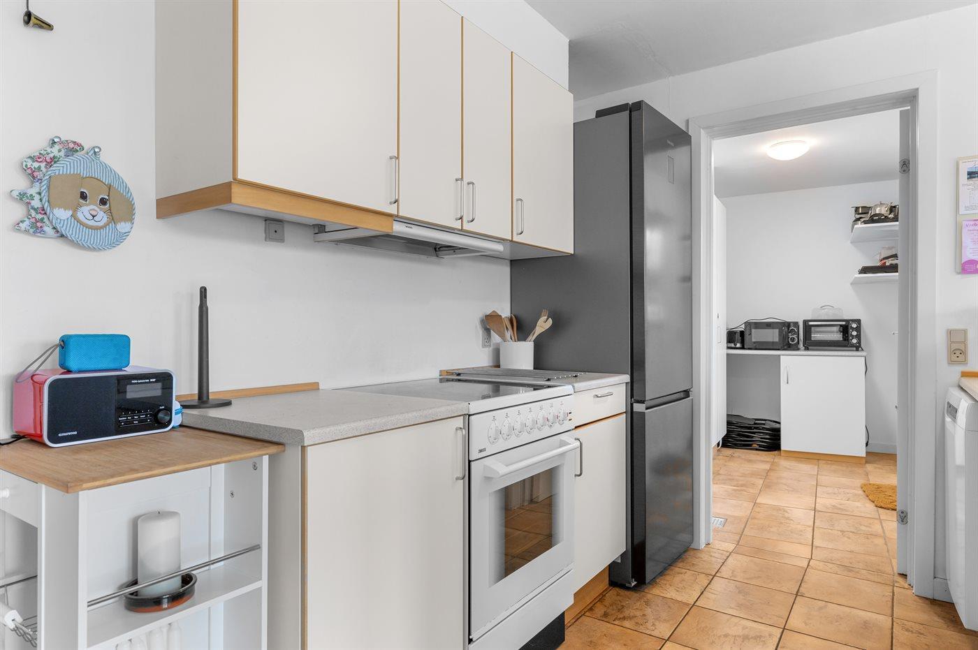Køkkenet er udstyret med 1 køleskab. Der er 4 keramiske kogeplader, varmluftovn, mikrobølgeovn samt opvaskemaskine.