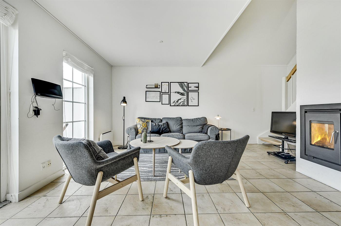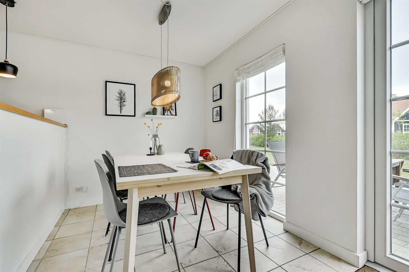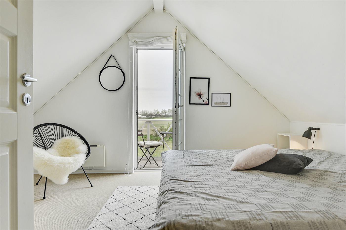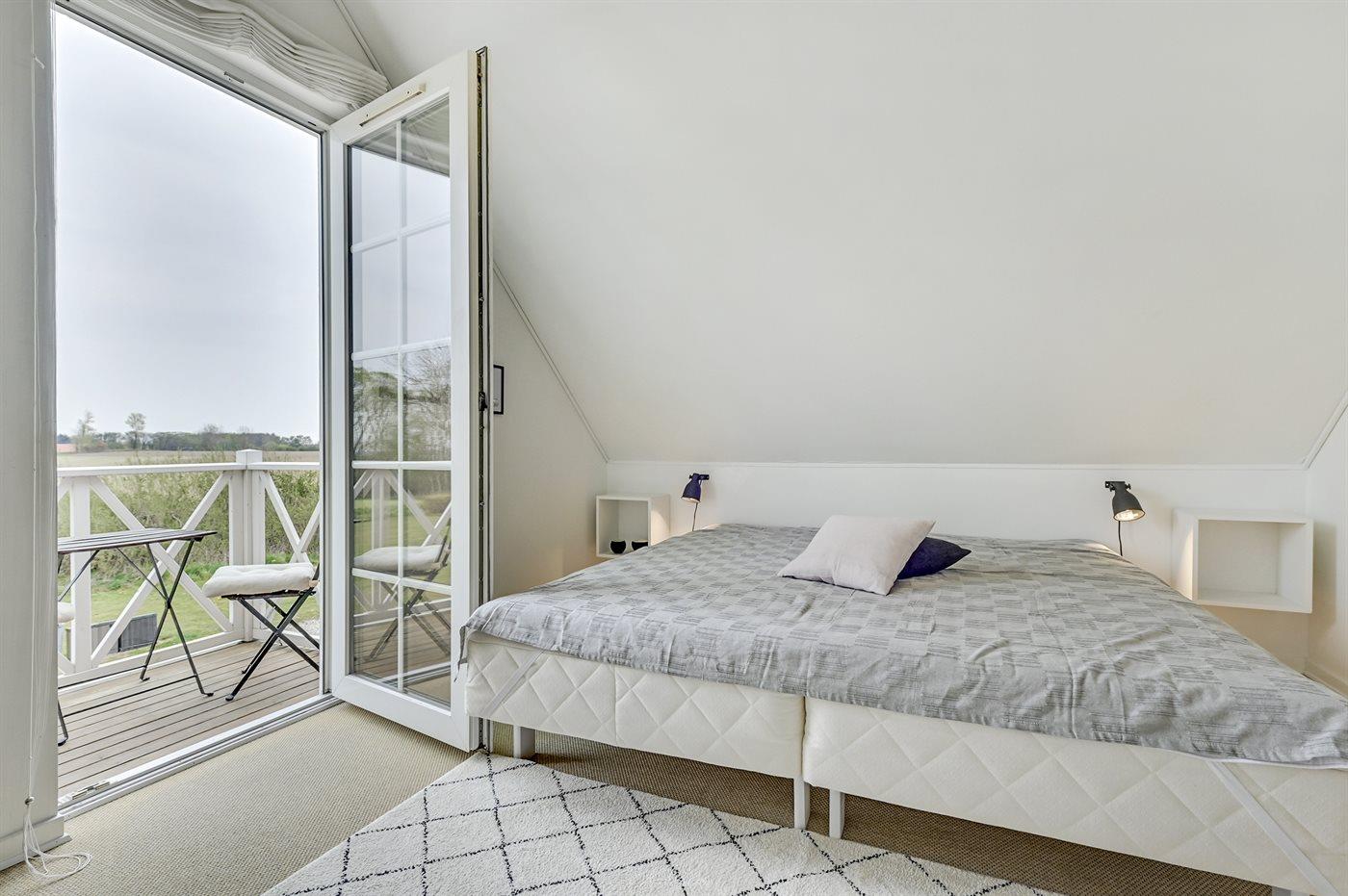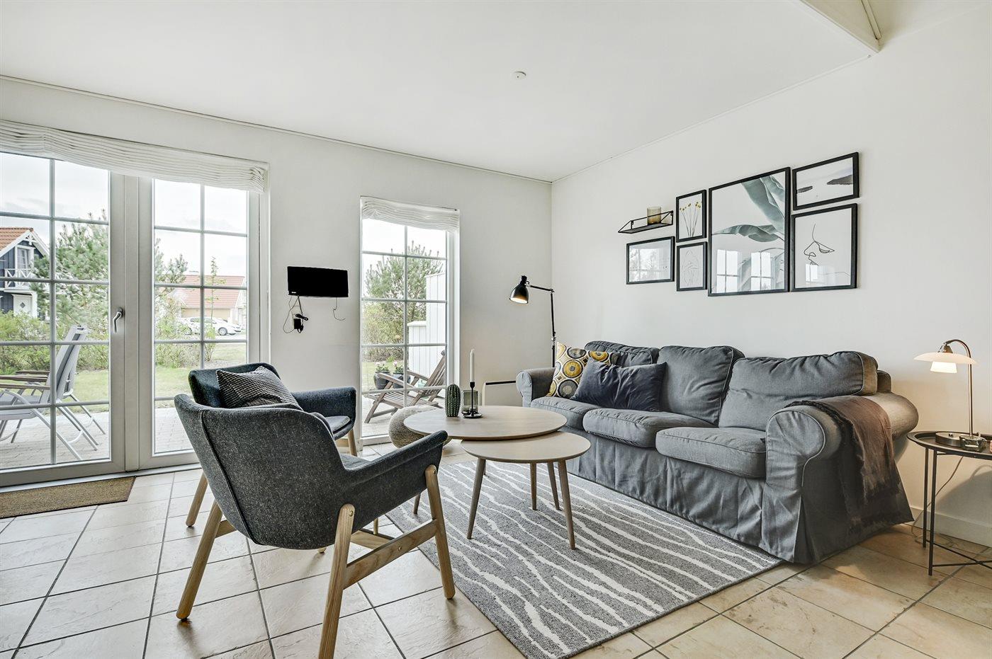 Arkitekttegnet rækkehus i træ i 2 etager. Til huset hører en åben terrasse med havemøbler samt balkon på 1. sal med udsigt over vandet og markerne. Klinkegulve i stueetagen, gulvtæpper på 1. sal. Huset ligger i et spændende sommerhusområde med gode aktivitetsmuligheder, bl.a. fælles legepladser, petanquebane, tennisbane samt beach-volleybane.