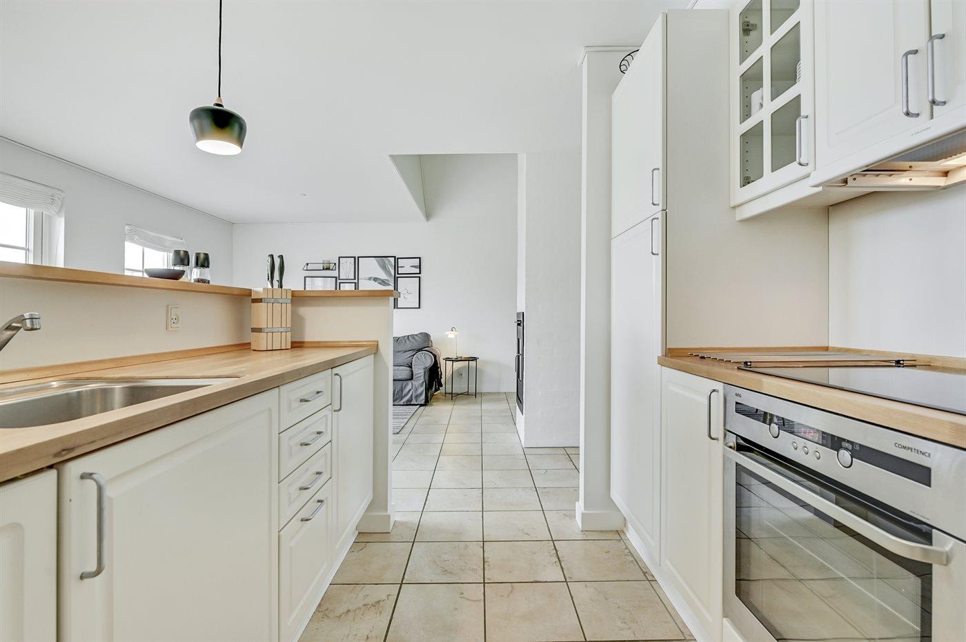 Køkkenet er udstyret med 1 køleskab. Der er 4 keramiske kogeplader, varmluftovn samt opvaskemaskine.