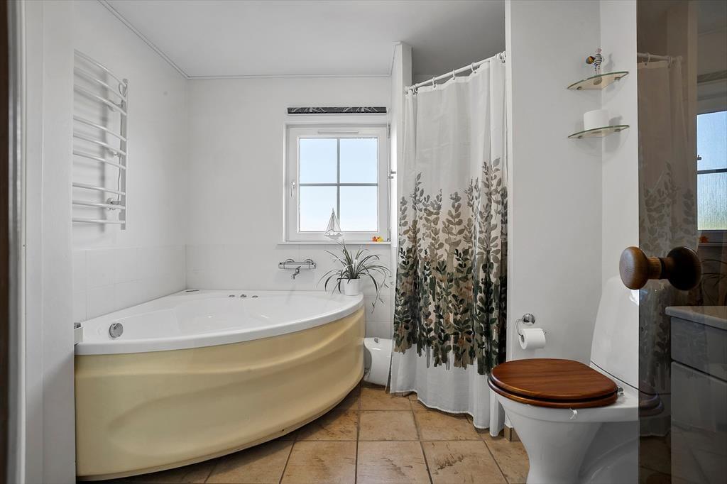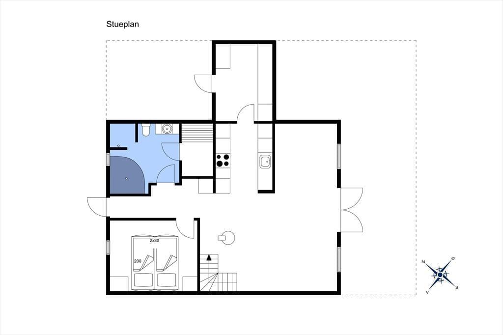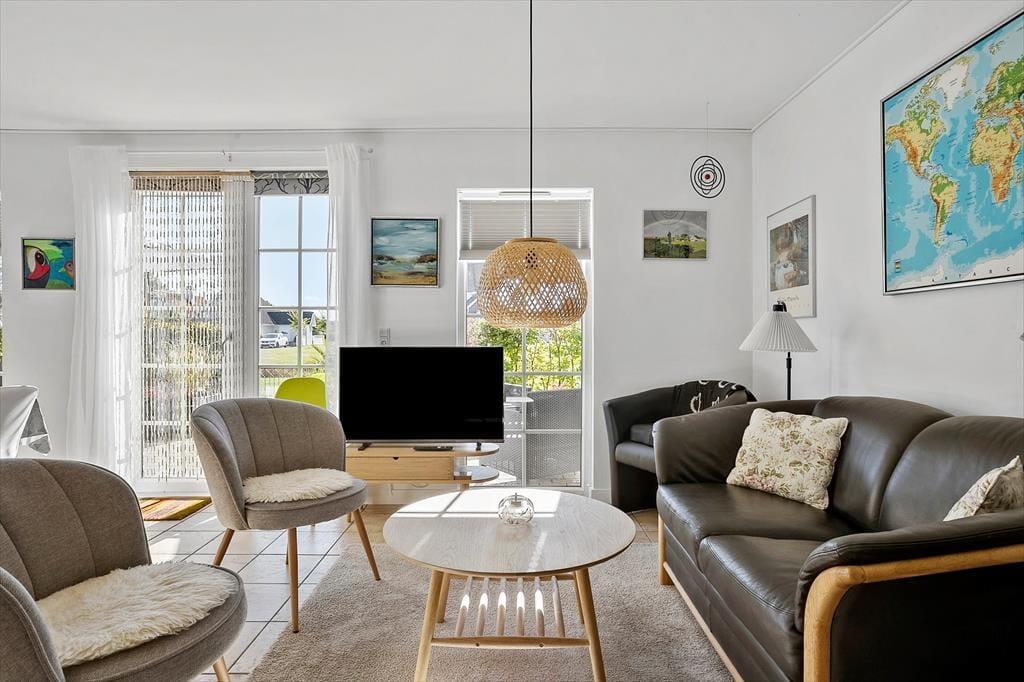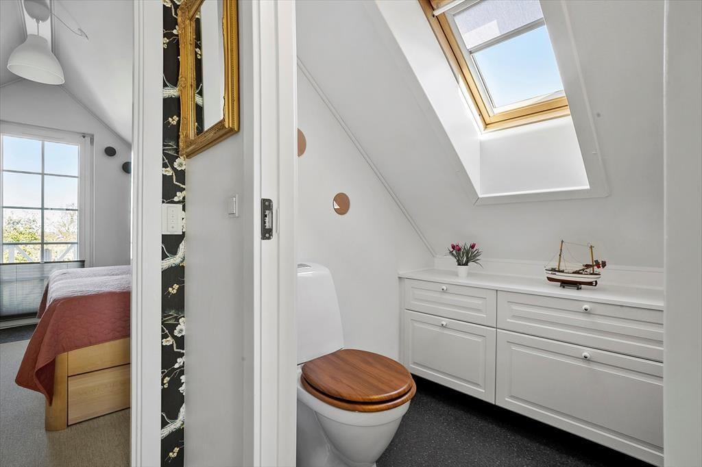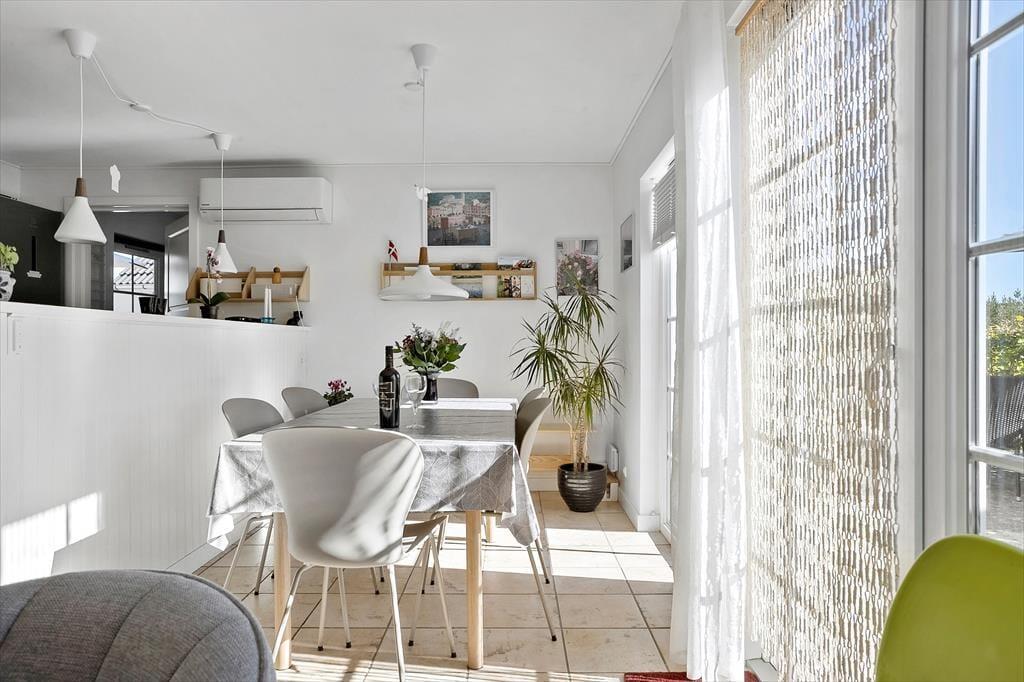 Huset er i to etager og byder på 3 soveværelser, ideelt til familier eller venner. I finder et badeværelse med spa og sauna, perfekt til afslapning efter en dag med strand og aktivitet. På 1. sal er der desuden et praktisk gæstetoilet. Køkken og alrum er åbne og lyse, så madlavning og socialt samvær går hånd i hånd.