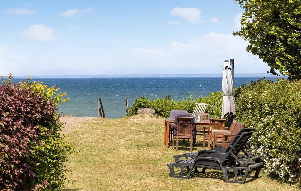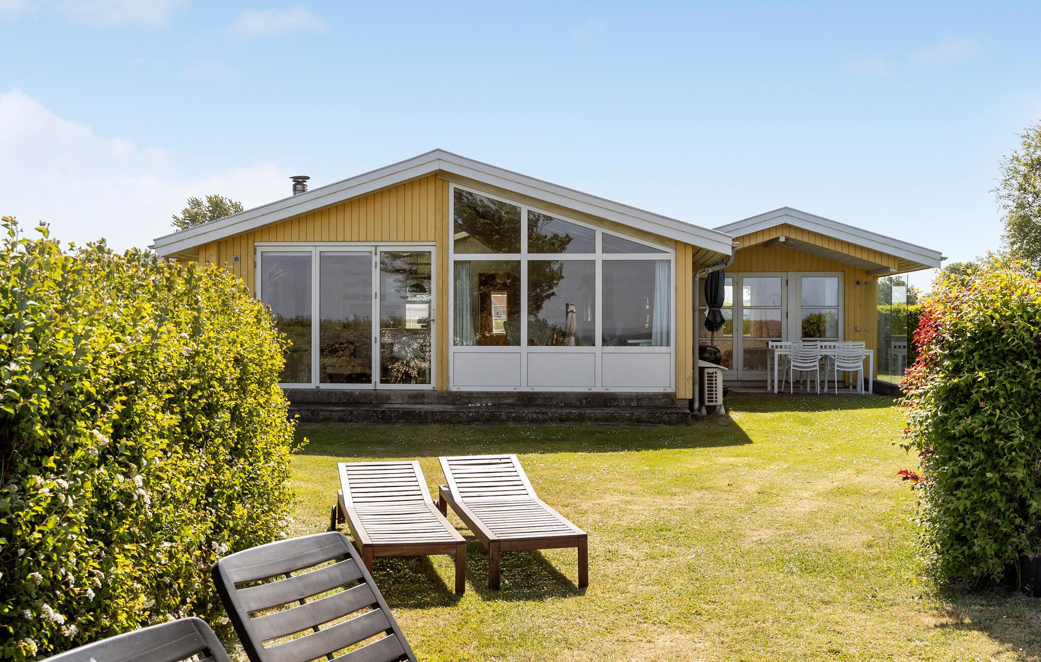 Hyggeligt feriehus ved stranden i Brenderup Fyn med panoramaudsigt over vandet.