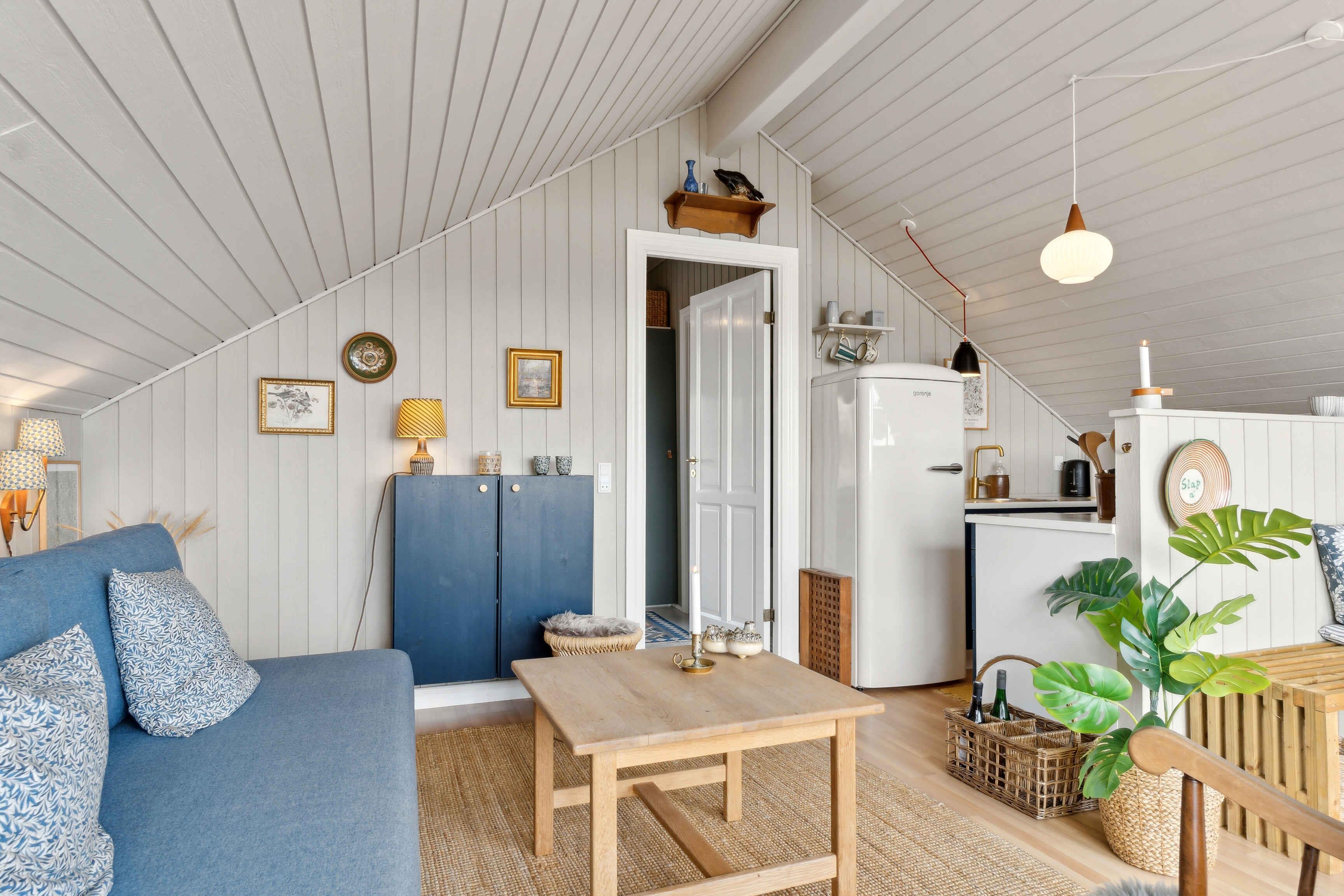I yderste klitrække ved vesterhavet, ligger vores skønne lille perle omgivet af vild og rustik natur, som pa° alle a°rstider giver ro langt ind i sjælen. Husets størrelse, og indretningen med klassiske danske møbler, bidrager til hyggelige stunder for singlen, parret eller den lille familie. En morgendukkert i vesterhavet er altid inden for rækkevidde, da sommerhuset har egen sti til en af Danmarks smukkeste sandstrande, som selv pa° en varm sommerdag ikke er voldsomt overbefolket. Fra køkken alrummet har du den smukkeste udsigt over klitheden, tranumenge og længere væk ser du Fosdalen ta°rne sig op. Området rummer flere af Danmarks bedste vandreruter, og hele den omkringliggende natur er natura2000 fredet og rummer mange store kronhjorte samt sjældne fugle og insekter. Hvis du ønsker mere kultur en det lokale kunstmuseum, den sommera°bne restaurant og ishus, som alt sammen findes indenfor fa° hundrede meter, kan du nemt komme til Svinkløv eller køre ad stranden over blokhus hele vejen til løkken. Selve huset rummer alt hvad man behøver: Dobbeltseng i soveværelset, en sovesofa der passer til en enkel (eller 2 der er glade for hinanden), vaskemaskine og et køkken med hvad der skal til for at lave mad og kaffe. Pa° terrassen er der grill, bord, stole og strandsenge. Uanset a°rstid kommer du til et lunt hus da vi netop har installeret en ny varmepumpe med wifi, hvilket ogsa° holder el udgifterne i den smukke vintersæson pa° et minimum.