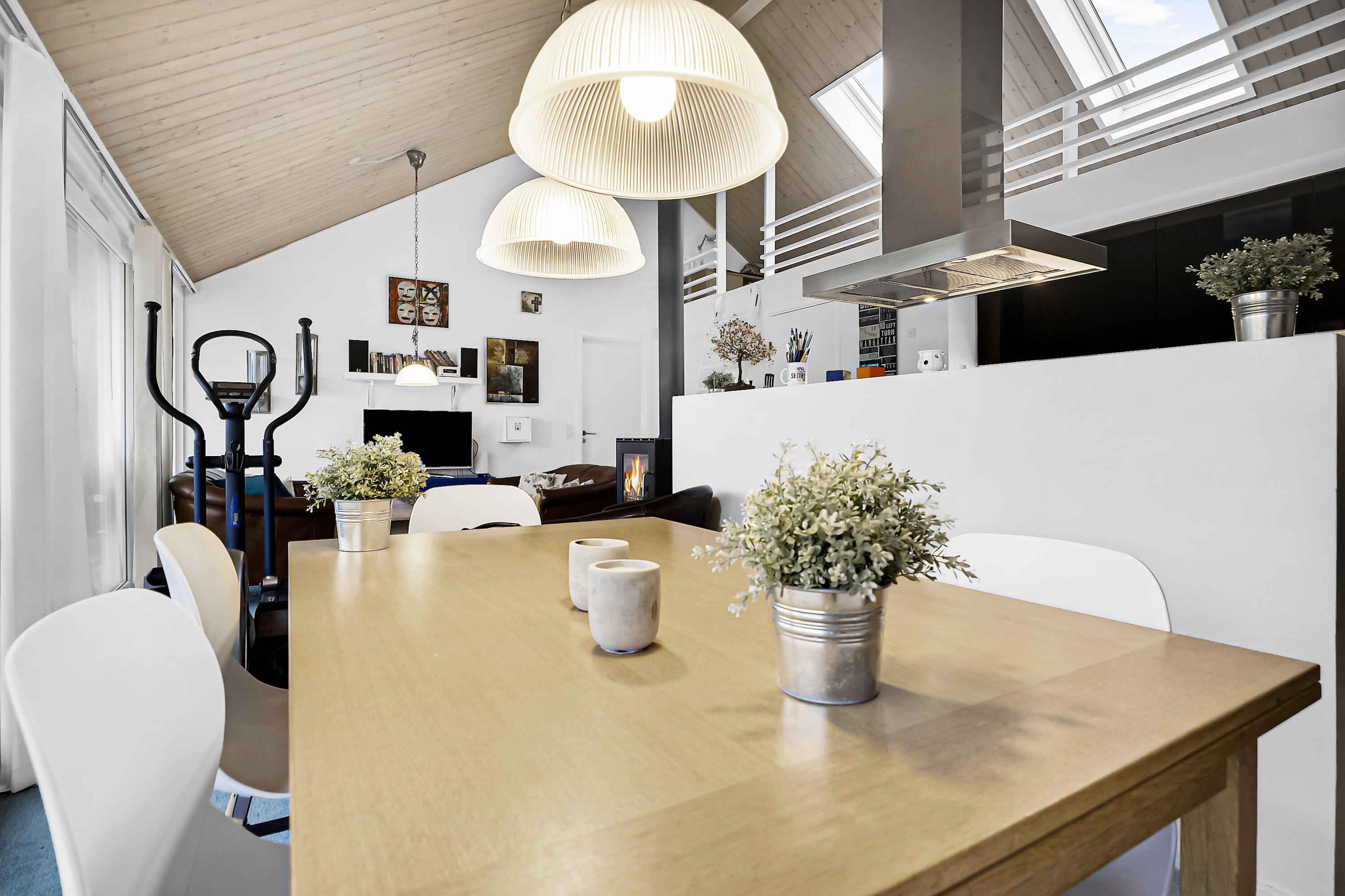 Dette moderne sommerhus i sommerhusmrådet Skovdalen tæt på Tranum tilbyder en ideel flugt fra hverdagens travlhed. Med tre soveværelser og plads til 10 personer er det perfekt til store familier eller grupper. Huset har en frisk og moderne indretning, der kombinerer komfort og stil. De to af værelserne og stuen har hemse med gode sengepladser. Hemsen i stuen kan nemt rumme 4 personer Oplev luksus i hverdets øjeblikke med de to velindrettede badeværelser. Efter en dag fuld af eventyr er der intet bedre end at slappe af i husets indendørs spa og sauna. Udenfor venter en rummelig træterrasse, komplet med komfortable havemøbler og en grill. Forestil dig hyggelige sommeraftener her, mens du nyder selskabet og den friske luft. Området omkring ferieboligen er et sandt paradis for naturelskere. Uanset om det er vandreture, cykling eller blot at nyde roen, er mulighederne uendelige. Den omkringliggende natur er både beroligende og inspirerende. Dette sommerhus tilbyder en unik kombination af hjemlig komfort og luksuriøse faciliteter. Det er en perfekt base for at udforske alt, hvad området har at byde på. Her er alt, hvad du behøver for en mindeværdig ferie.