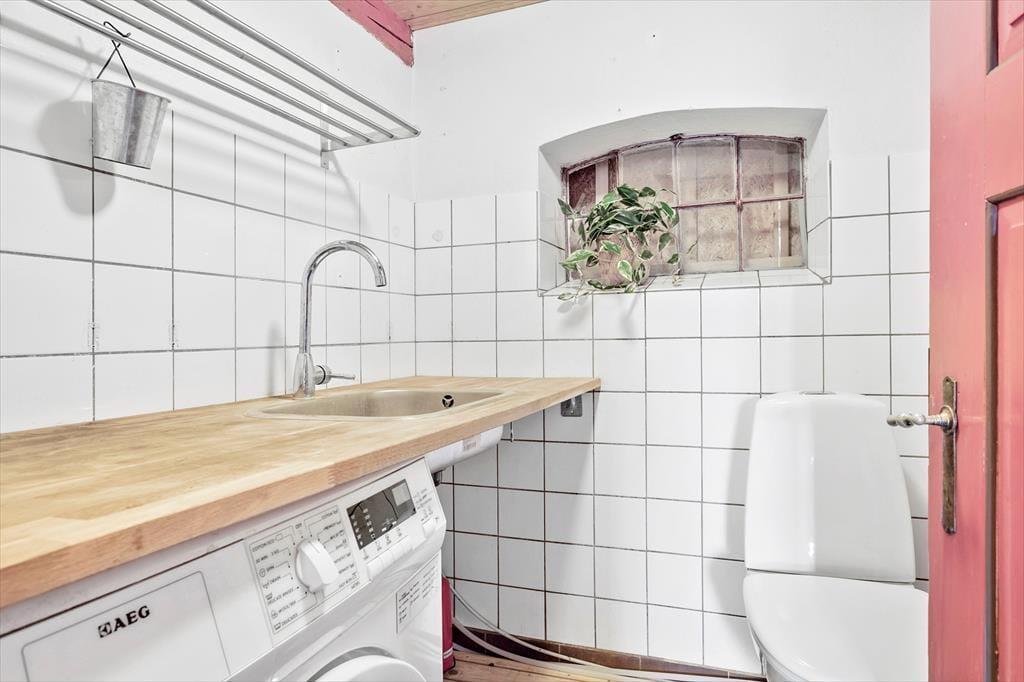 Her er også to toiletter. Det ene er et større badeværelse med en stor bruser og direkte udgang til haven, mens der i det mindre badeværelse er en vaskemaskine. Rundt om i huset findes flere muligheder for at trække sig tilbage i en hyggekrog og slappe af i fred og ro.