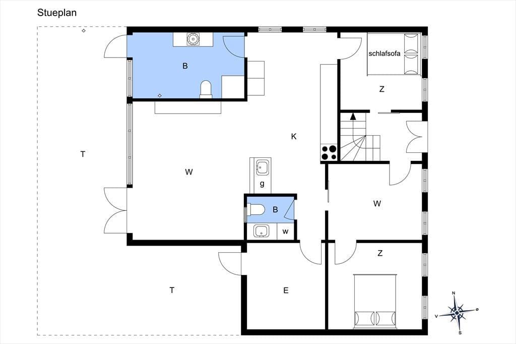 I stueplan er der to soveværelser, en med en komfortabel dobbeltseng og et andet værelse med en sovesofa på 140x200 cm.