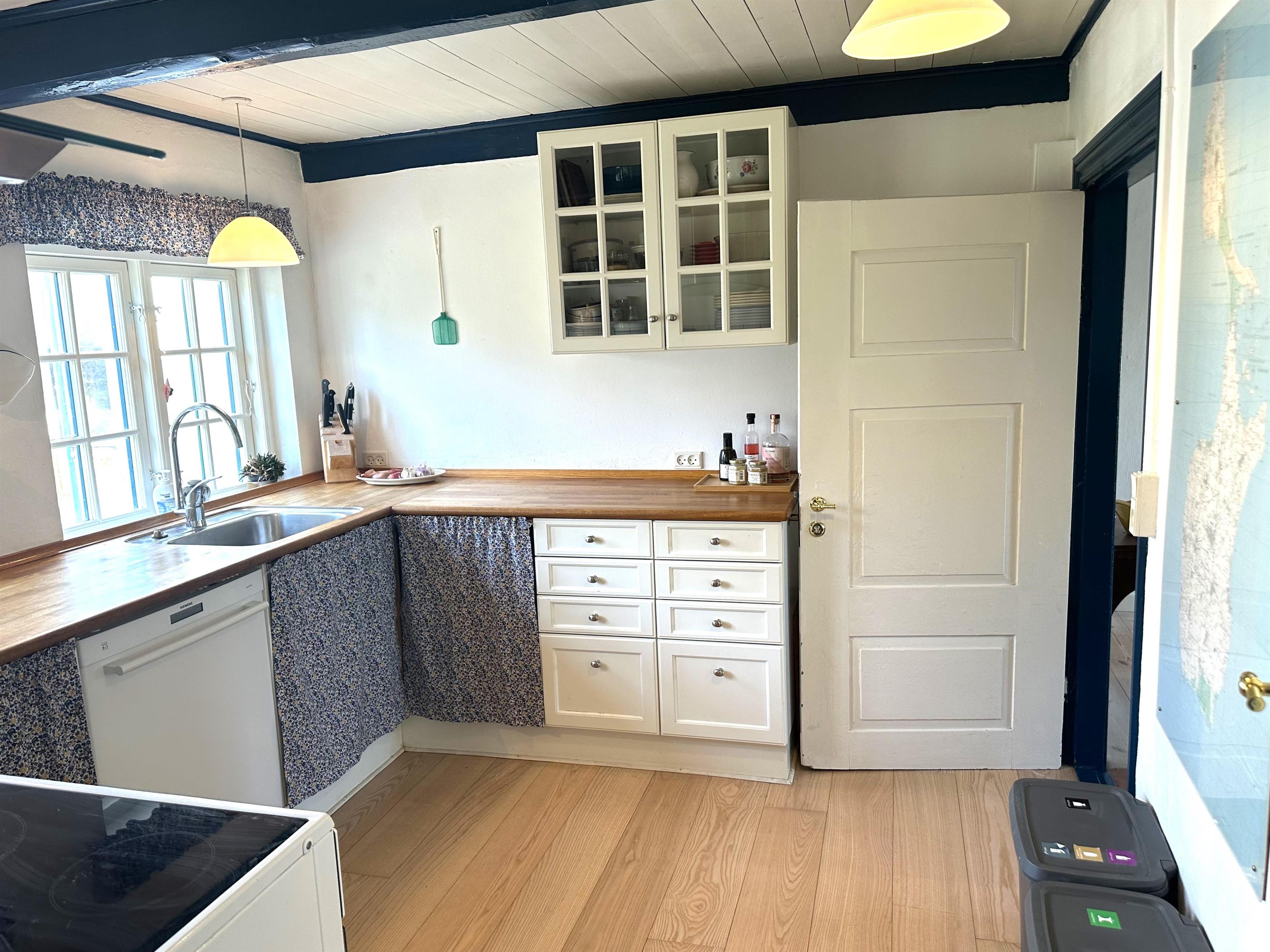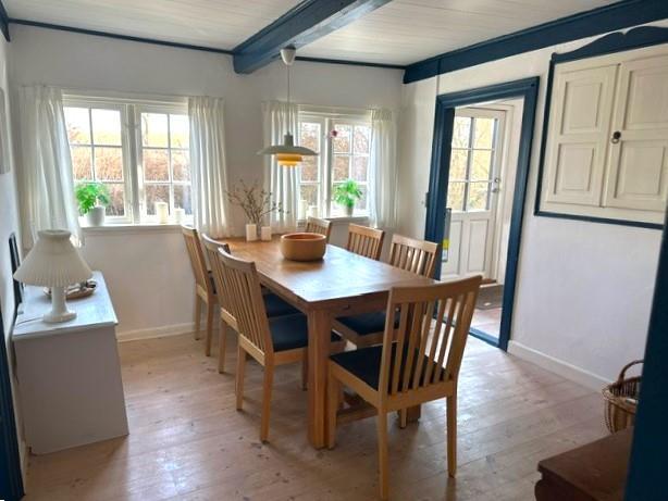 Huset er et klassisk bindingsværkshus med sjæl og charme, samtidig med at det tilbyder moderne komfort og plads til op til seks gæster. Indenfor mødes du af et skønt landkøkken, hvor du kan tilberede lækre måltider, en dejlig spisestue med brændeovn, der skaber en varm og hyggelig atmosfære, samt en rummelig og lys stue med store vinduer, der lukker dagslyset ind. I stueetagen findes også et soveværelse med dobbeltseng samt et badeværelse. På førstesalen er der yderligere to soveværelser, begge med dobbeltsenge, samt endnu et badeværelse, hvilket gør huset ideelt til både familier og vennepar, der ønsker at nyde ferien sammen.