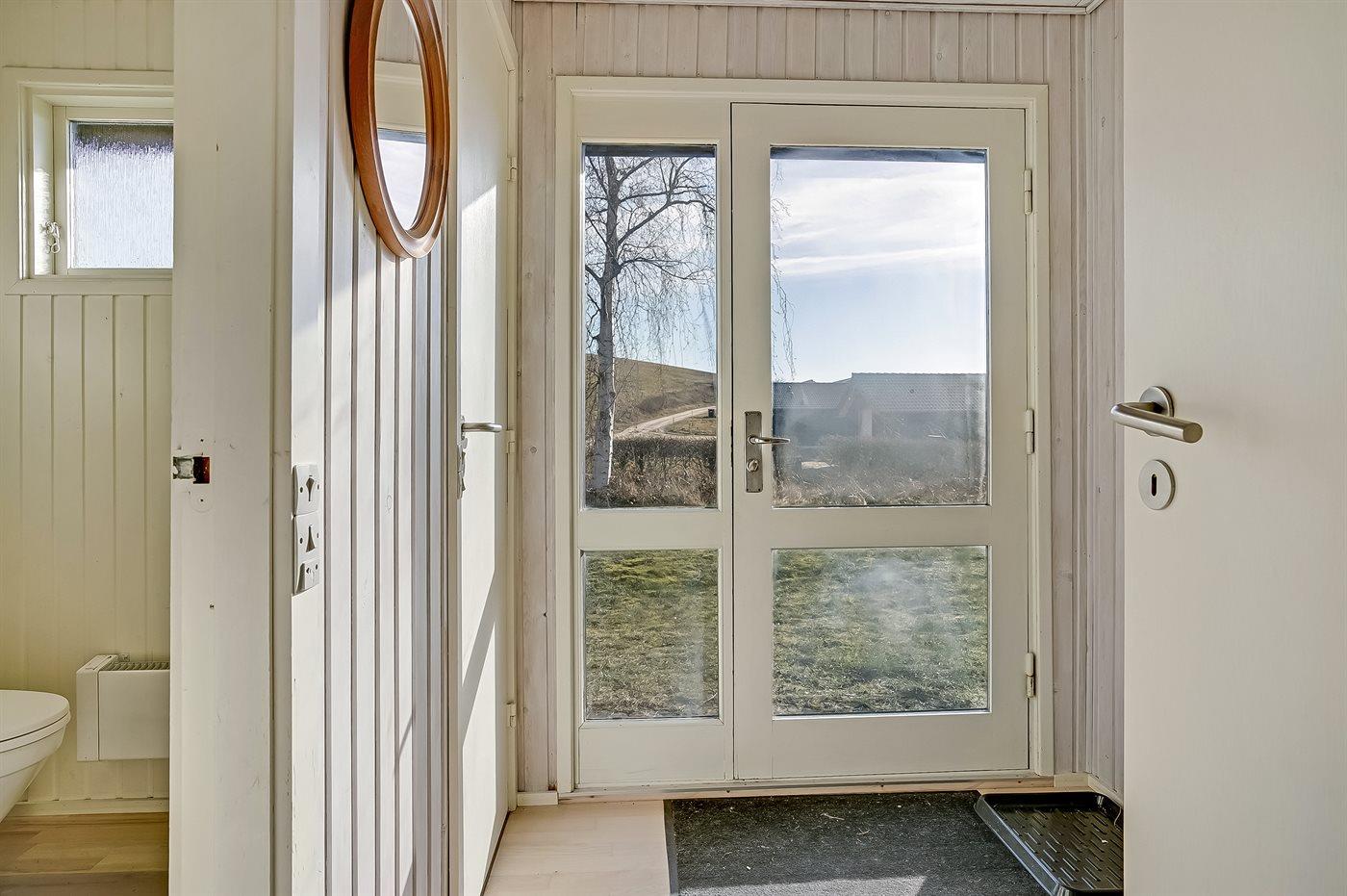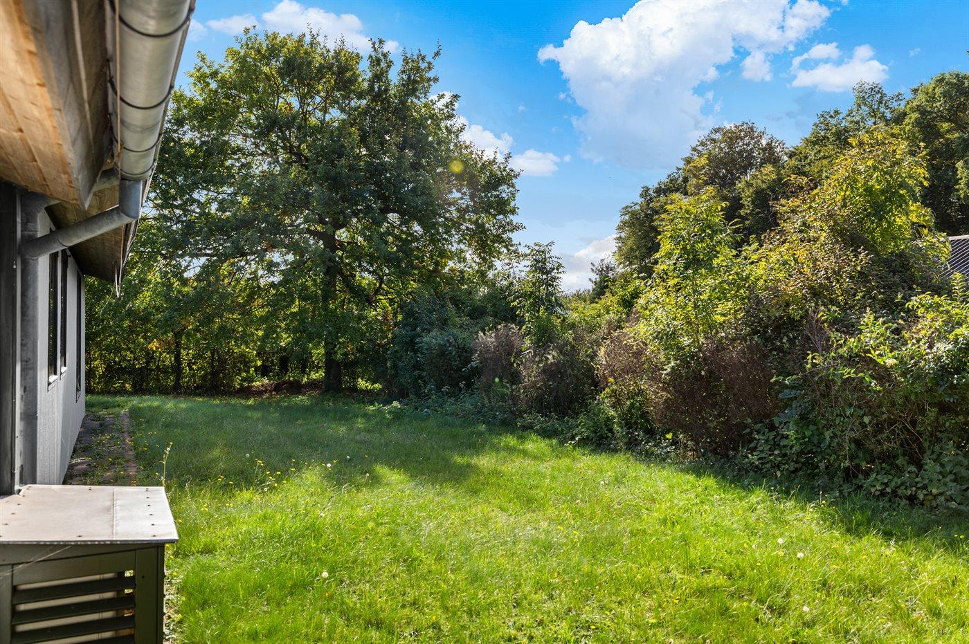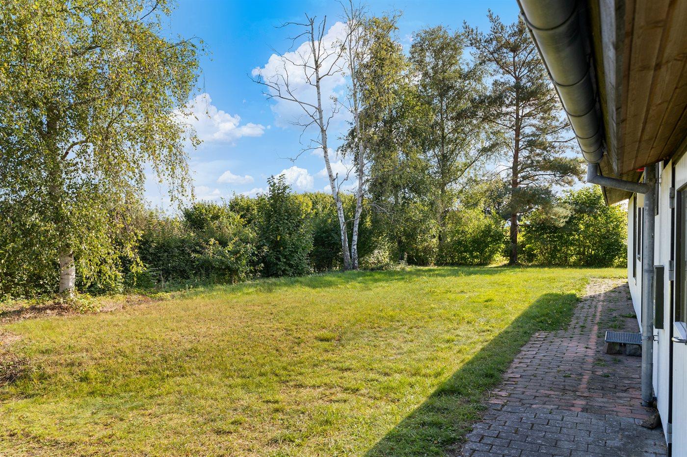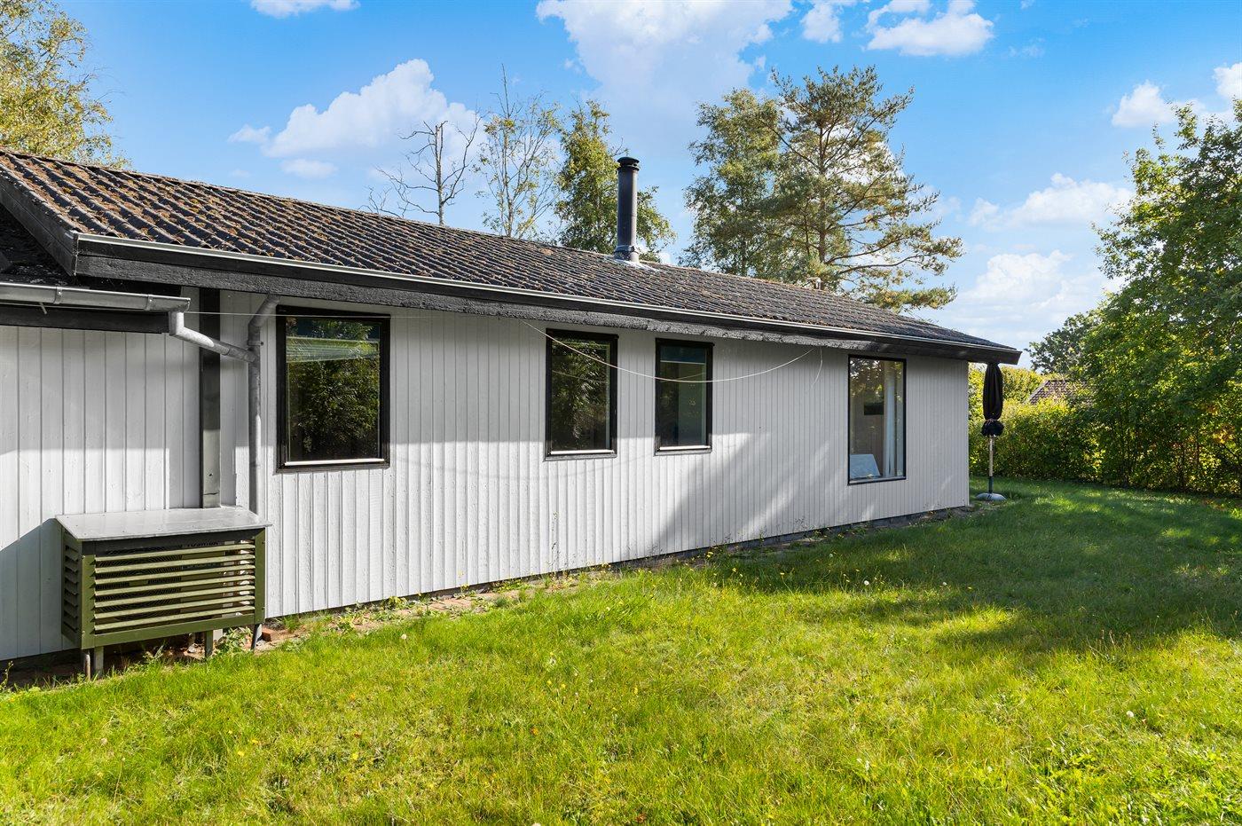 Ferieboligen er beliggende på en 1052 m² stor havegrund. Der er 400 m til havet. Nærmeste forretning er beliggende i en afstand af 5000 m. Til ferieboligen hører 20 m² terrasseareal. Desuden er der 10 m² overdækket terrasse. Der er redskabsrum. Grill til rådighed. Der er installeret stik til opladning af elbil. Parkering ved ferieboligen.