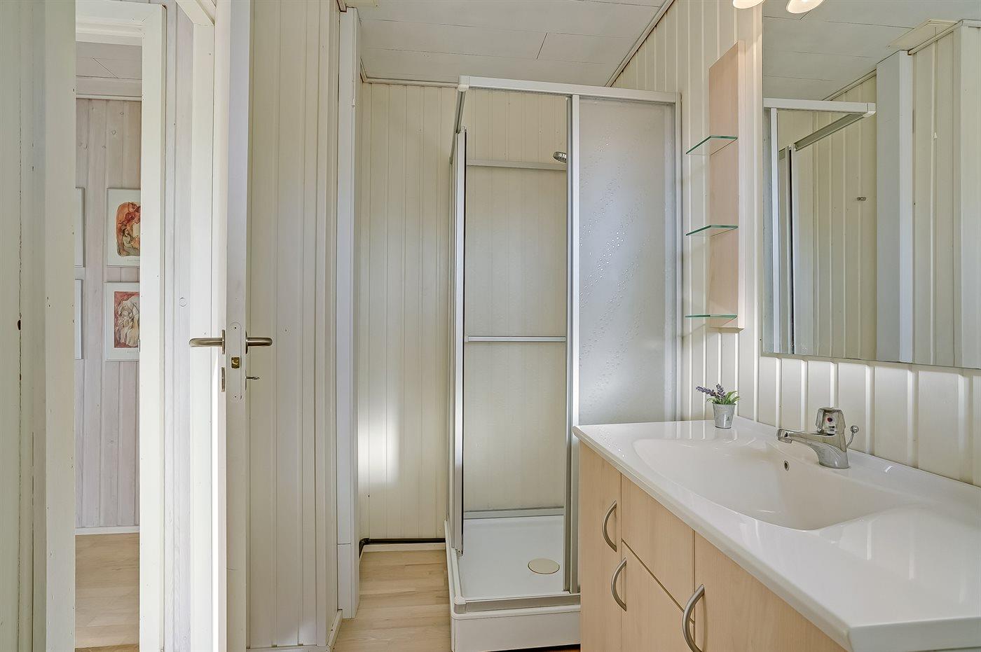 Der er 1 badeværelse med bruseniche og 1 toilet.