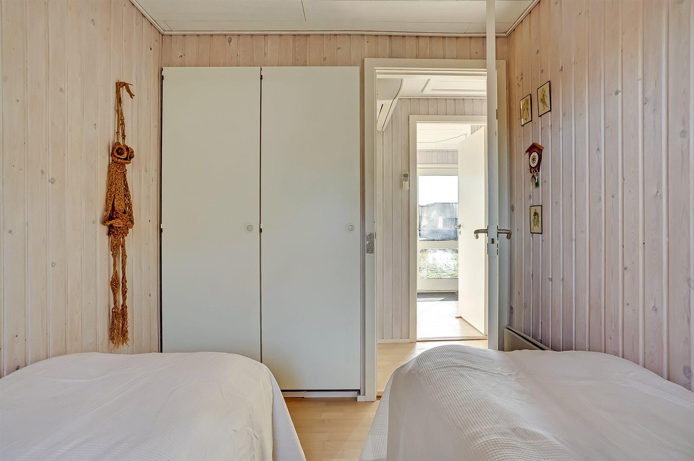 Der er i alt 2 soveværelser. Sovepladserne fordeler sig på: 2 sovepladser i dobbeltseng. 2 sovepladser i enkeltsenge. 2 sovepladser i sovesofa (dobbelt).