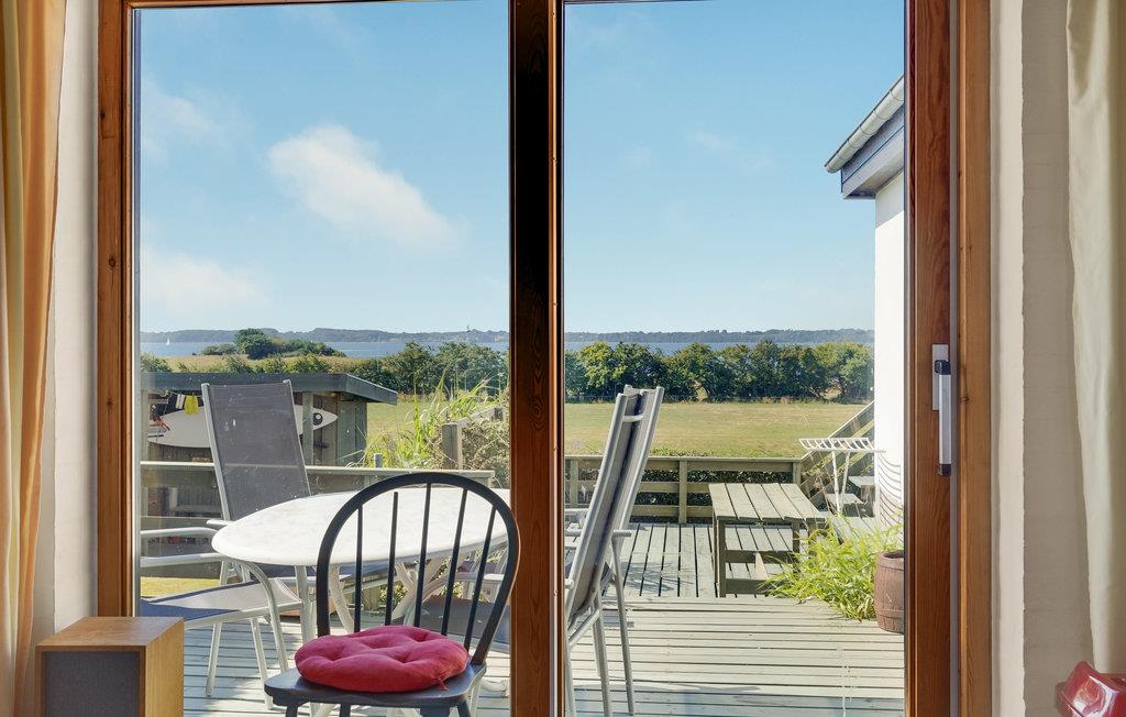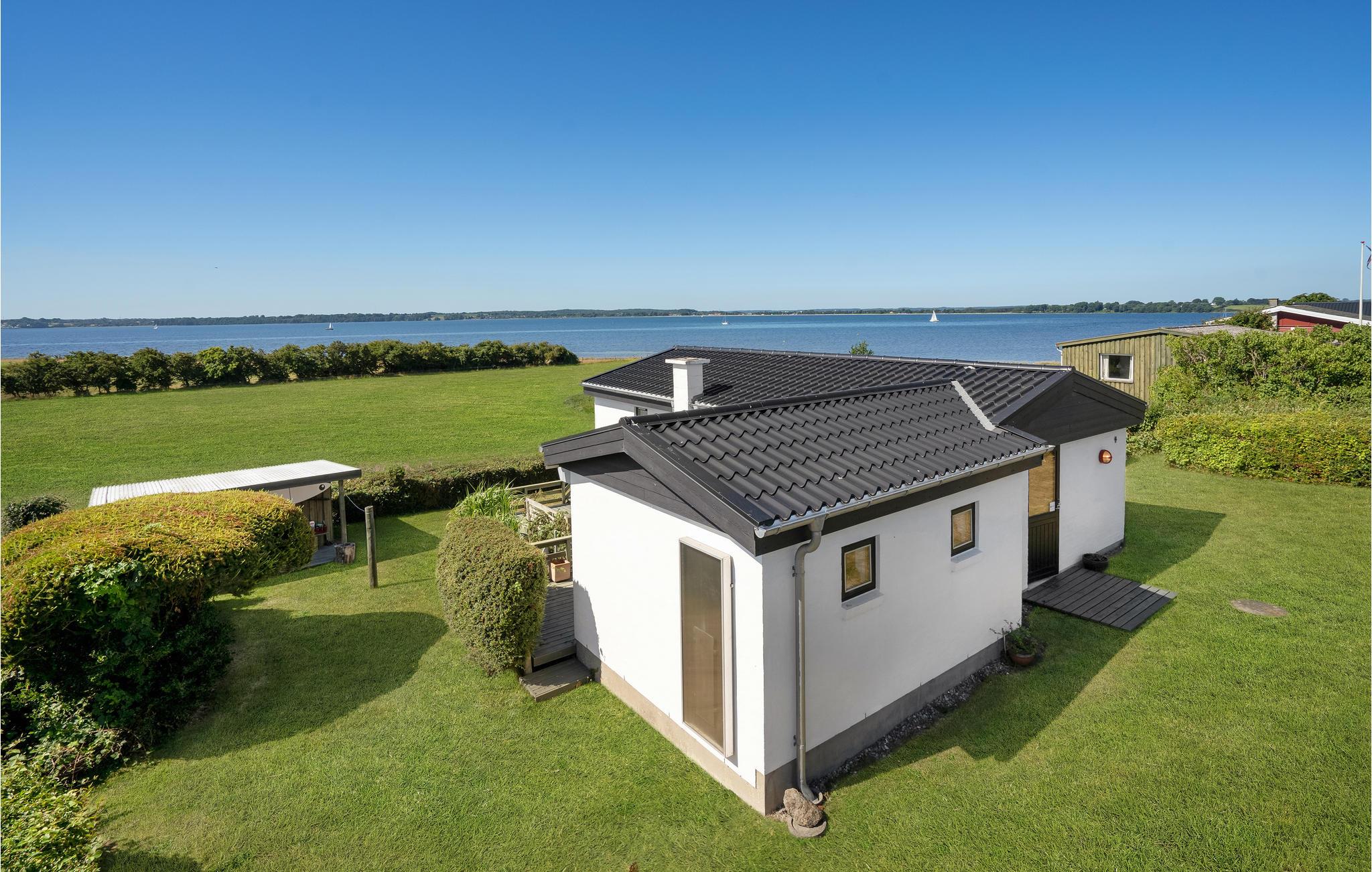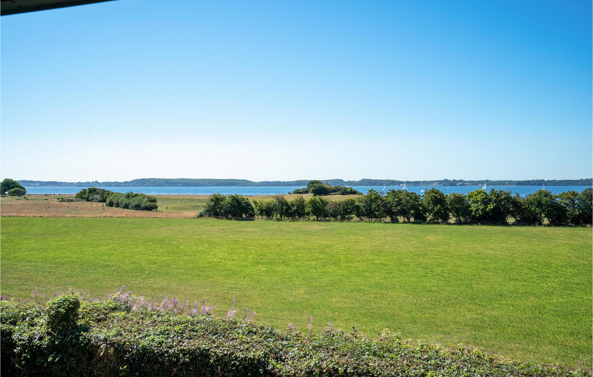 Hyggeligt feriehus med panoramaudsigt over Flensborg Fjord og tæt adgang til vandet ved Brunsnæs Strand.