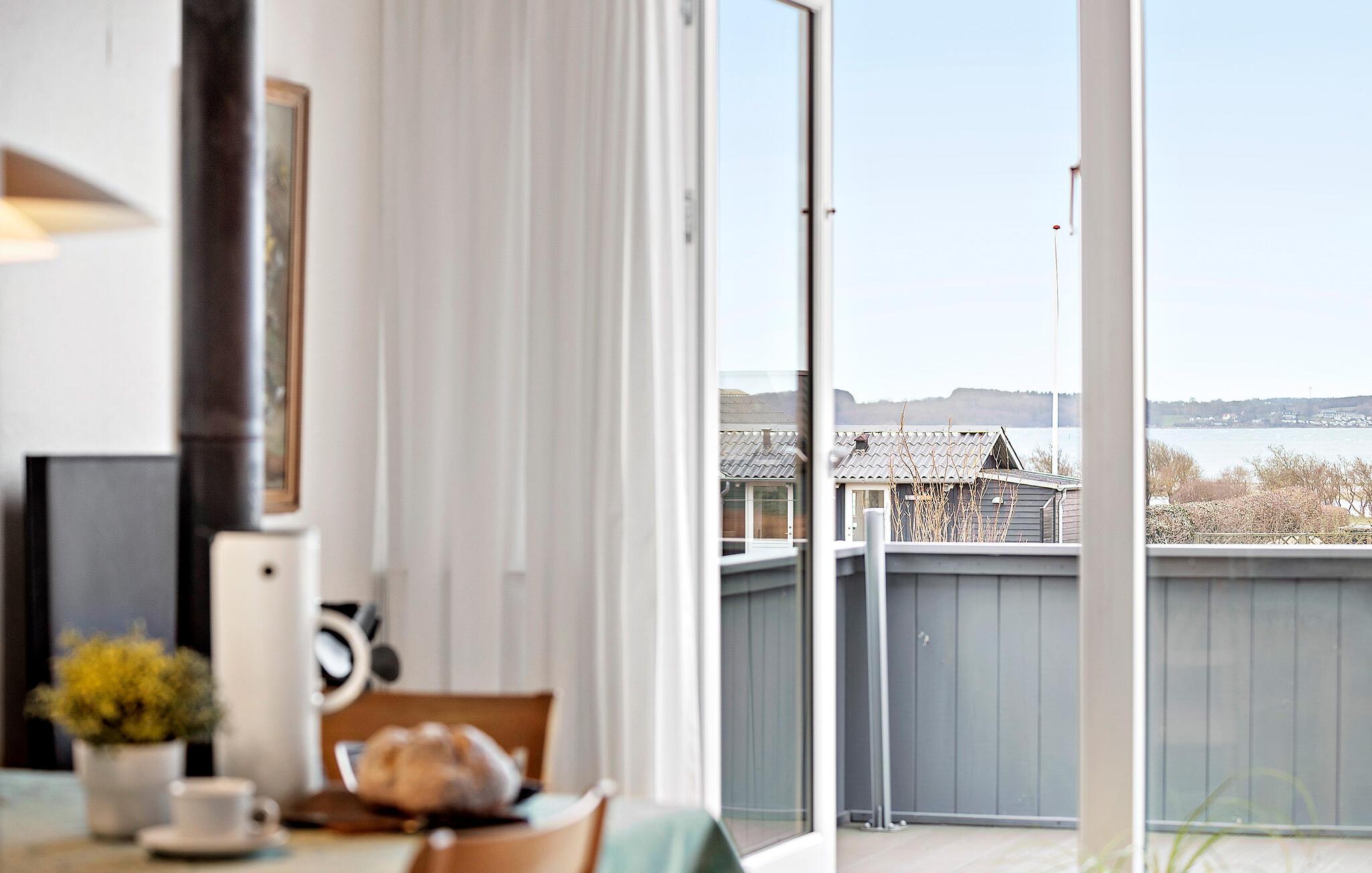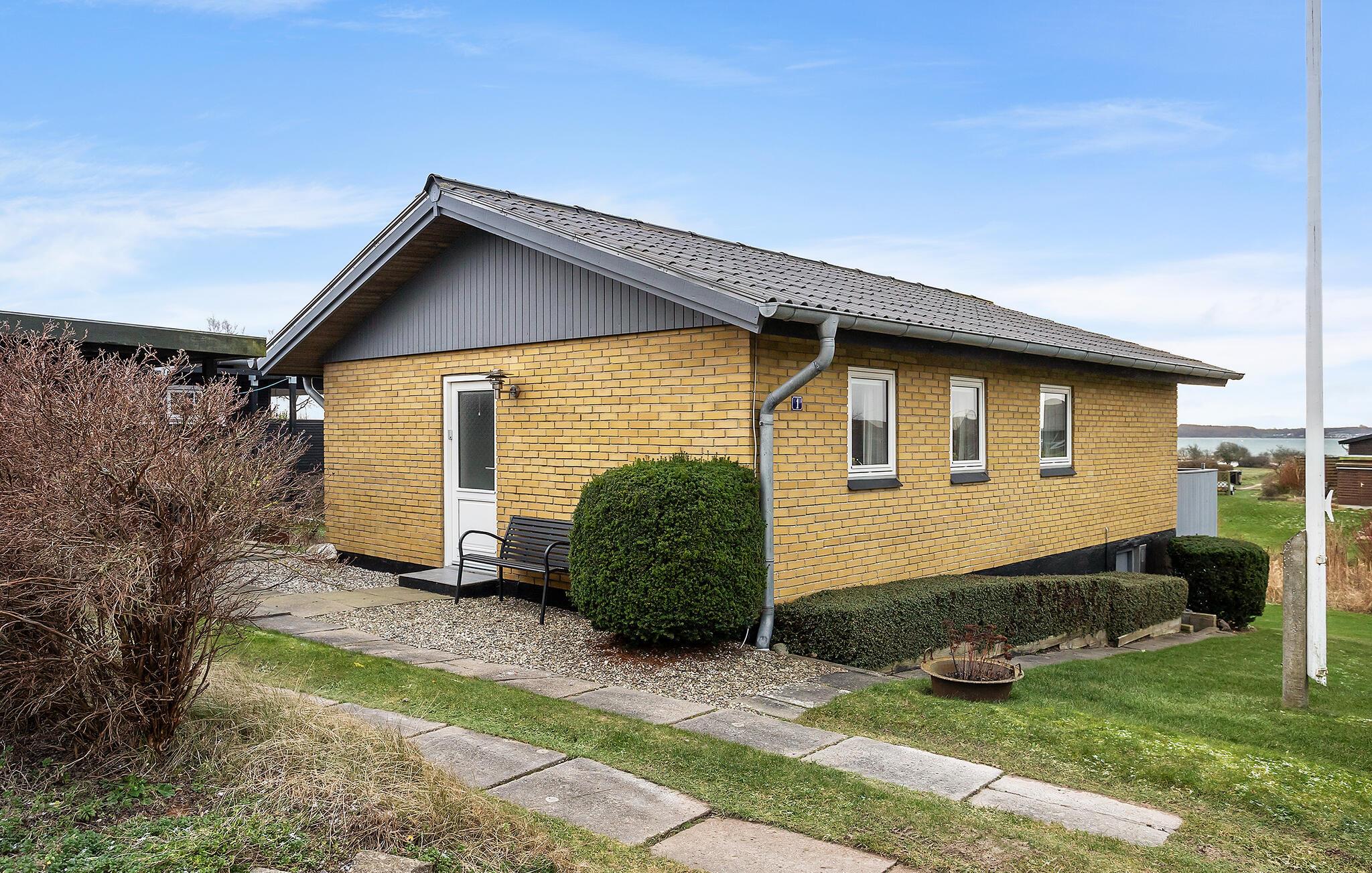 Hyggeligt feriehus ved Brunsnæs Strand med panoramaudsigt over Flensborg Fjord og kort afstand til sandstrand.