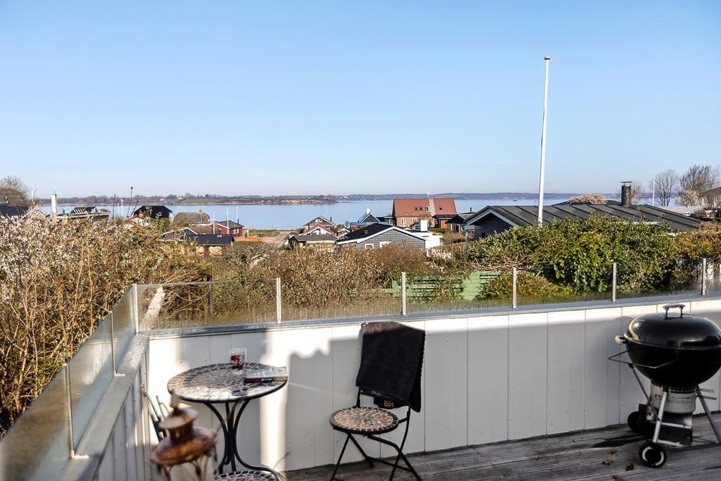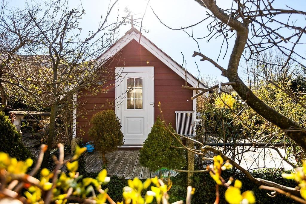 Sommerhusets romantiske have er en sand oase. Her kan du slappe af i den velplejede have og lade dig betage af den betagende udsigt over vandet. Det er det perfekte sted at nyde morgenkaffen, læse en god bog eller blot lade tankerne flyve.