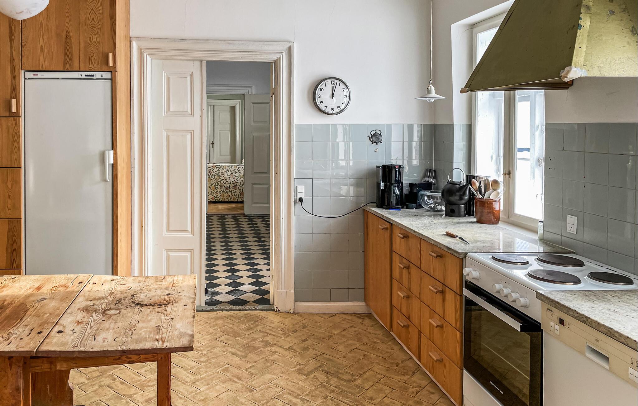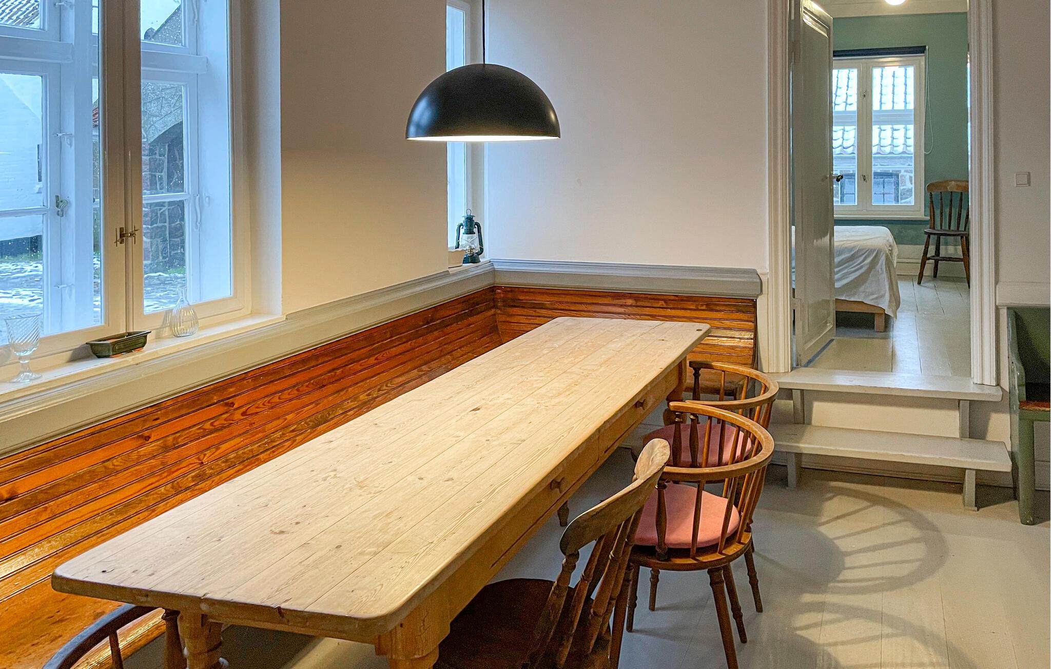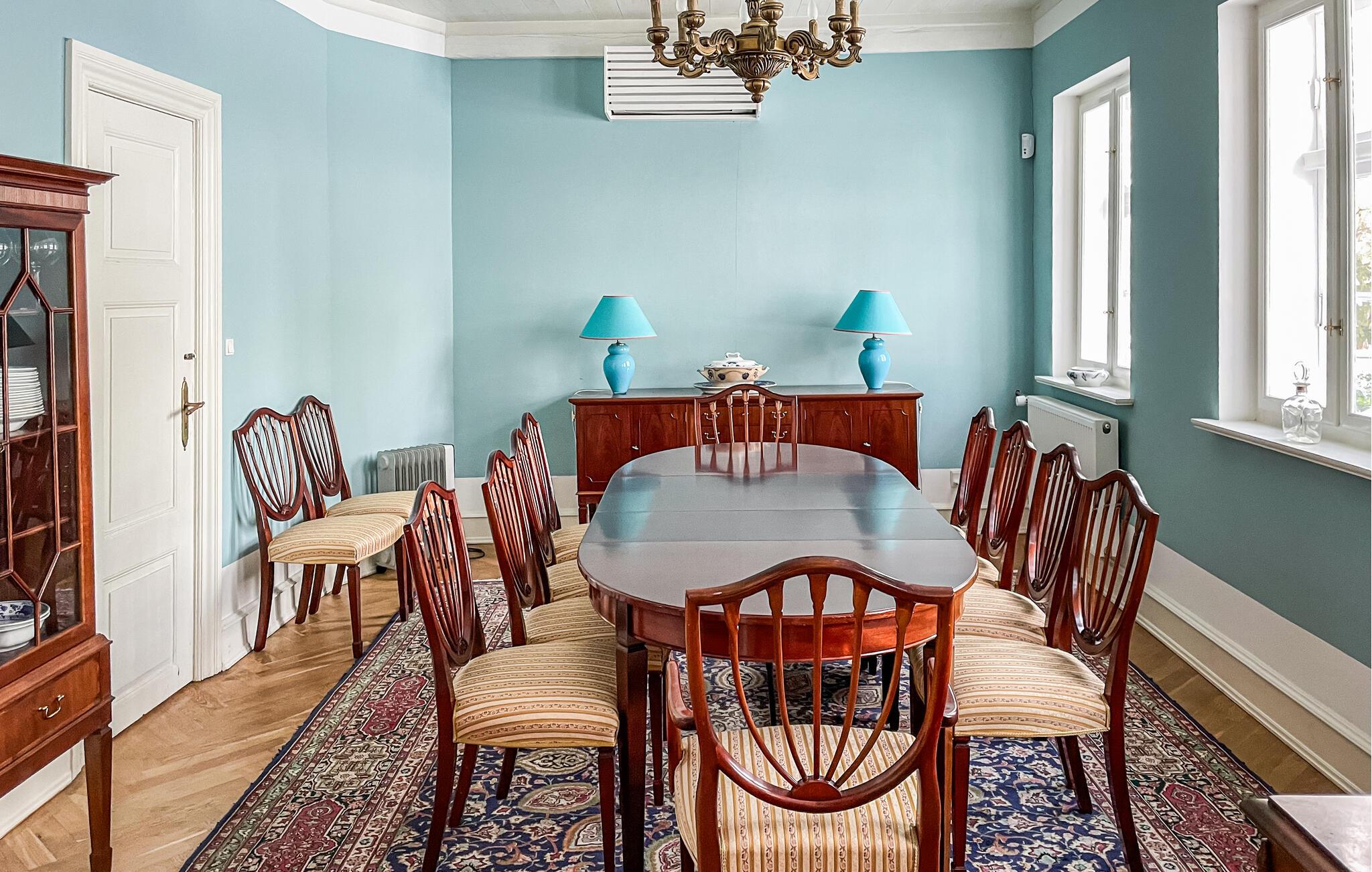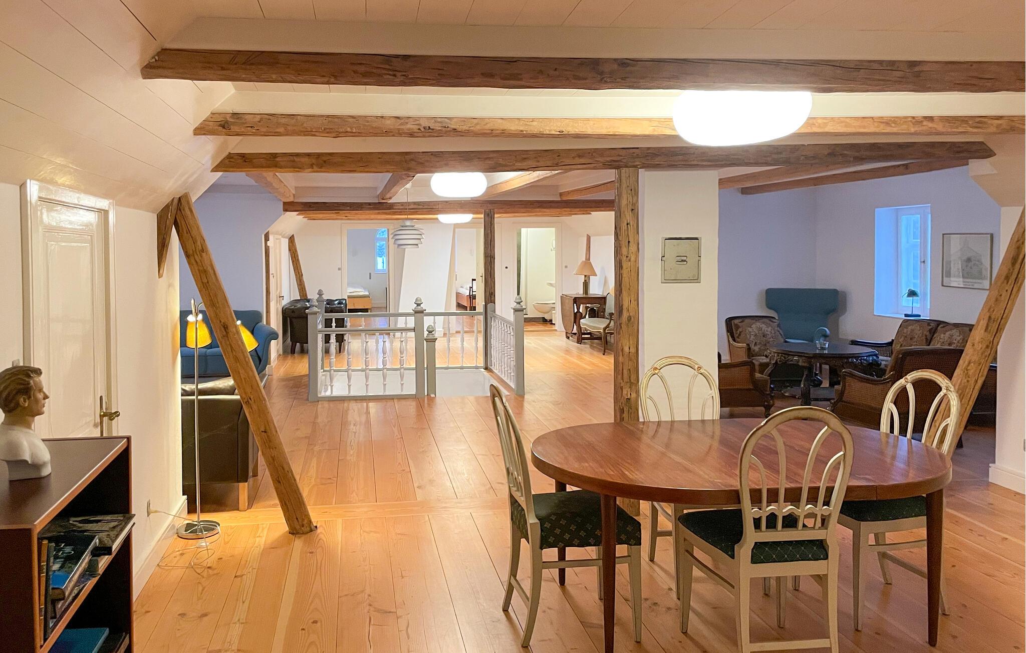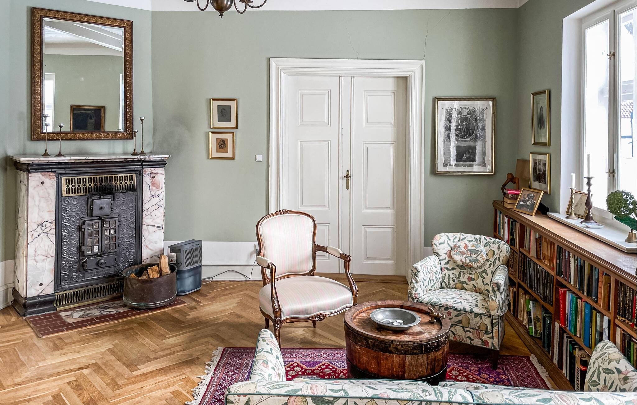Dette tidligere herregård er noget særligt med sine historiske møbler, der elegant blander sig med komfort og hygge. Antikke møbler og kunstværker tilføjer et personligt præg. Tilbring afslappende timer på sofaen med kaffe, samtale eller læsning og nyd den særlige atmosfære.