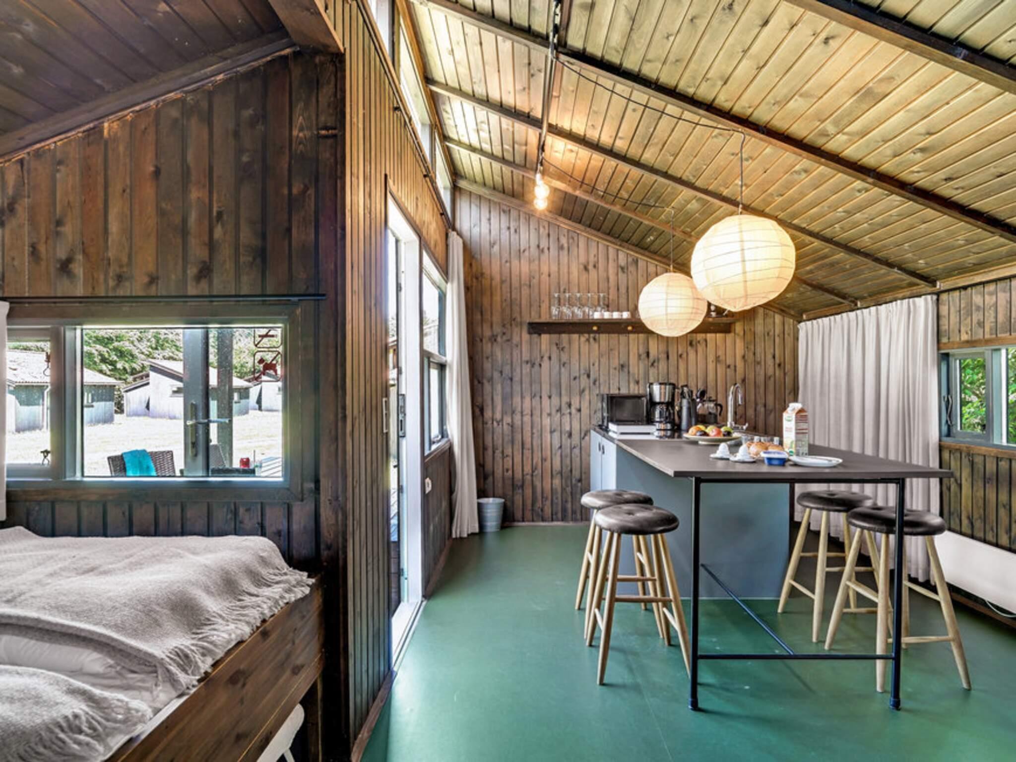 Oplev naturen med stil i **New Nordic-hytten** på Hampen Camping. Hytten er bygget i mørkt træ og indrettet med varme materialer og nordisk minimalisme, der giver en rolig og afslappet stemning – perfekt til en komfortabel pause fra hverdagen.